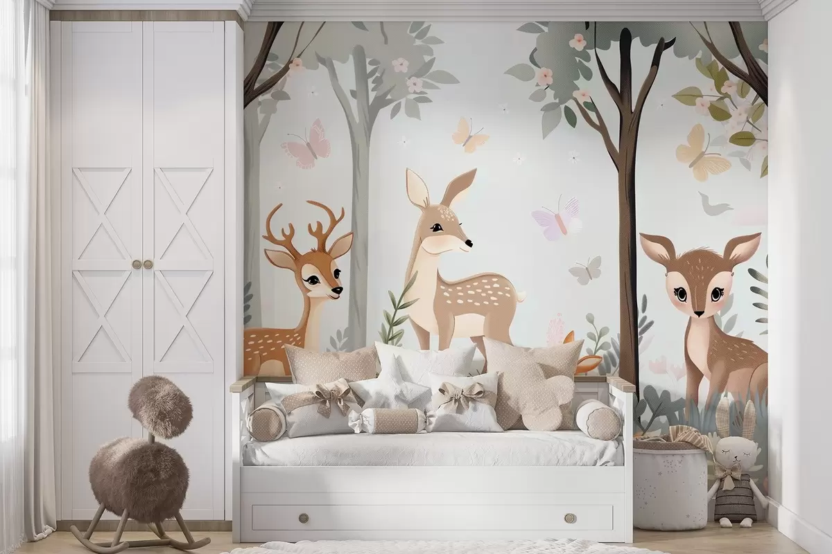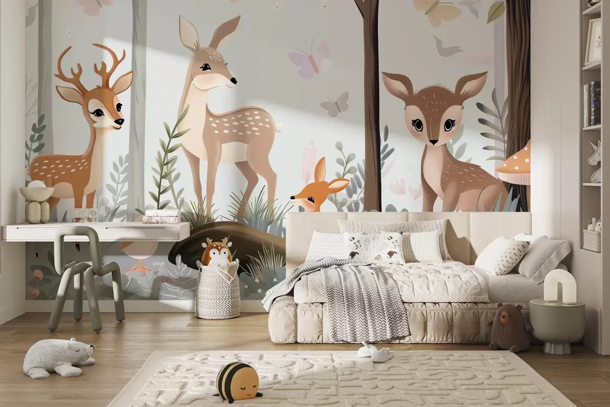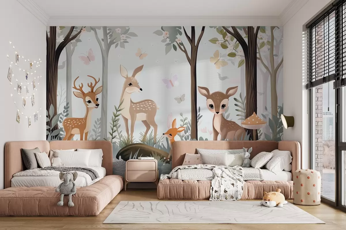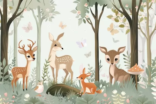Zidne murale Hirovite šumske životinje u plavim tonovima br. w09227v1