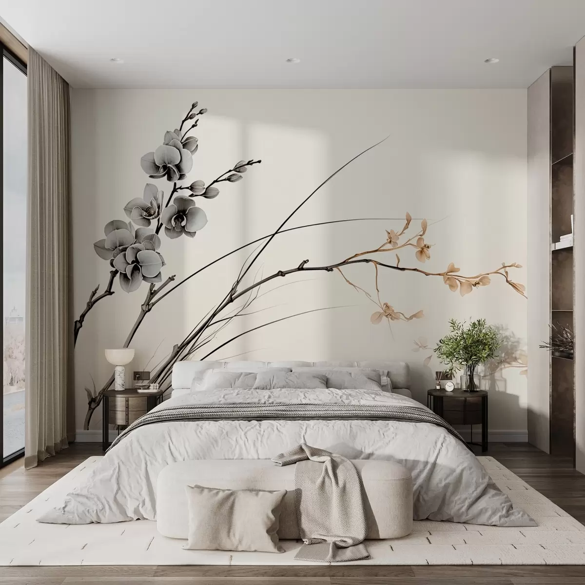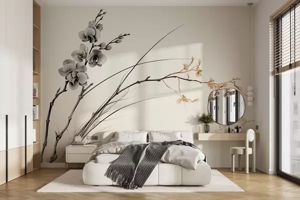 Zidne murale Minimalistička grana orhideje u mekim sepija i sivim tonovima br. w09250