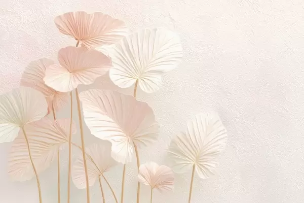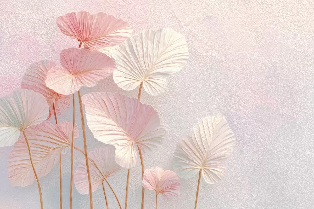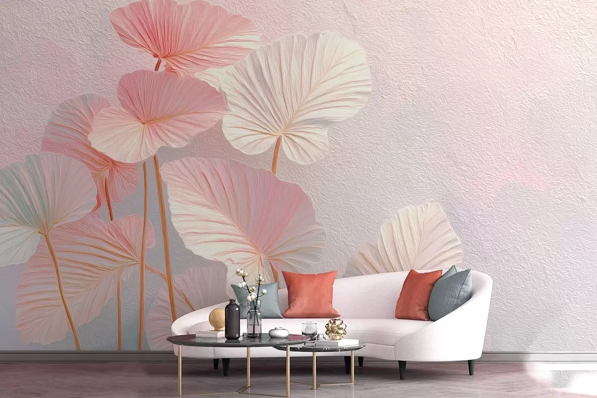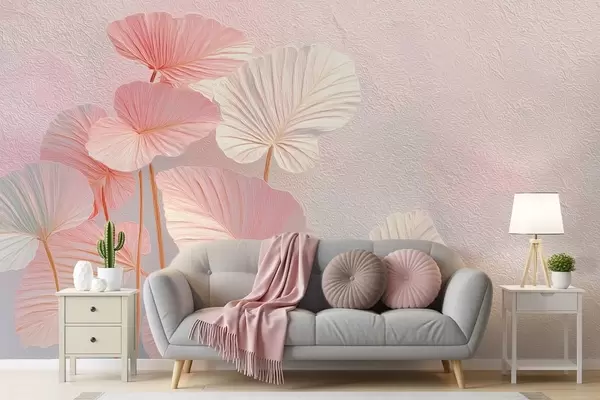 Zidne murale Elegantni veliki tropski listovi u nježnim ružičastim i plavim nijansama br. w09252