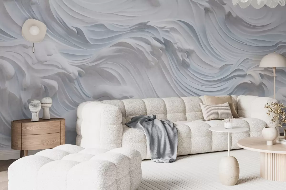 Zidne murale Bijeli i svijetloplavi teksturirani apstraktni oceanski valovi s pjenom, koji teku s lijeva na desno, dinamičan i teksturiran otisak br. w09266