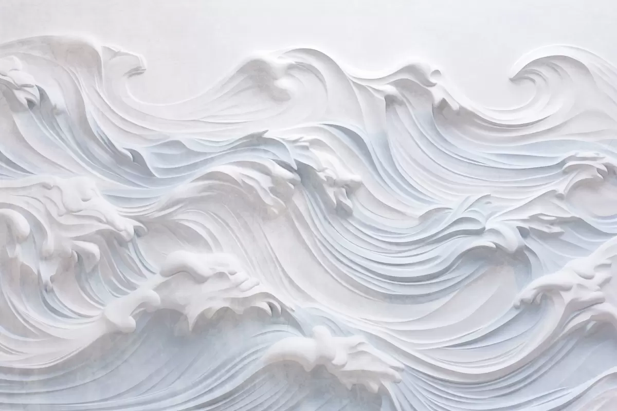 Zidne murale Bijeli i svijetloplavi teksturirani apstraktni oceanski valovi s pjenom, koji teku s lijeva na desno, dinamičan i teksturiran otisak br. w09266