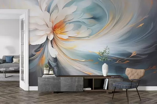Zidne murale Apstraktni cvijet u nježnim plavim i narančastim tonovima br. w09270
