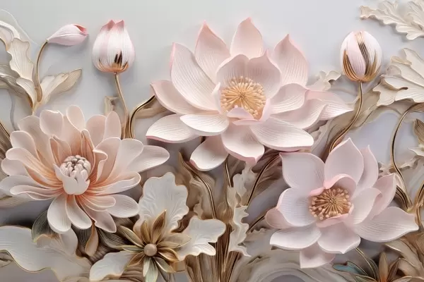 Zidne murale Volumetrijski ružičasti cvjetovi sa žutim lišćem br. w09277