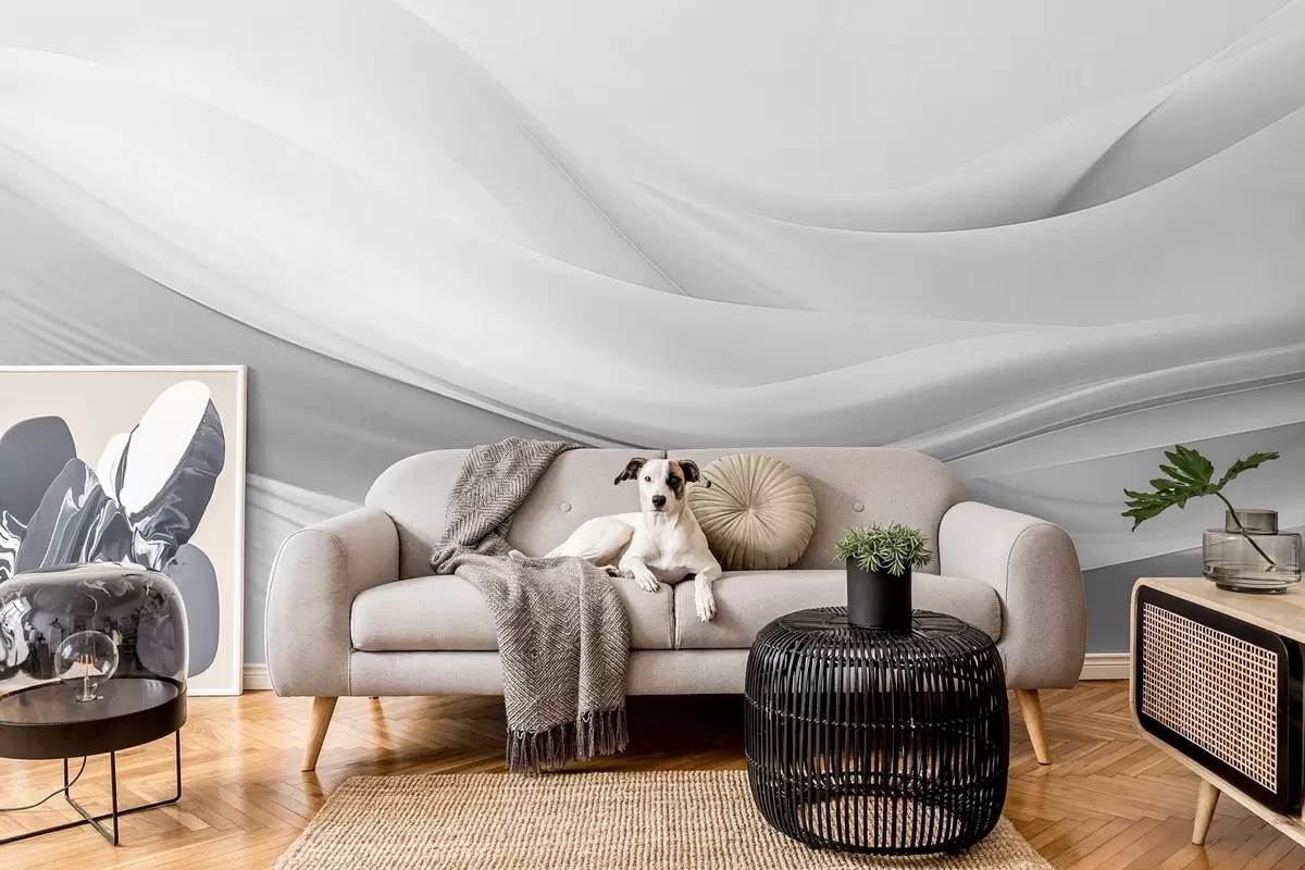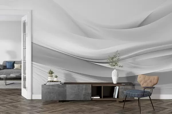 Zidne murale Valovi sive tkanine u minimalističkom apstraktnom stilu br. w09279v1