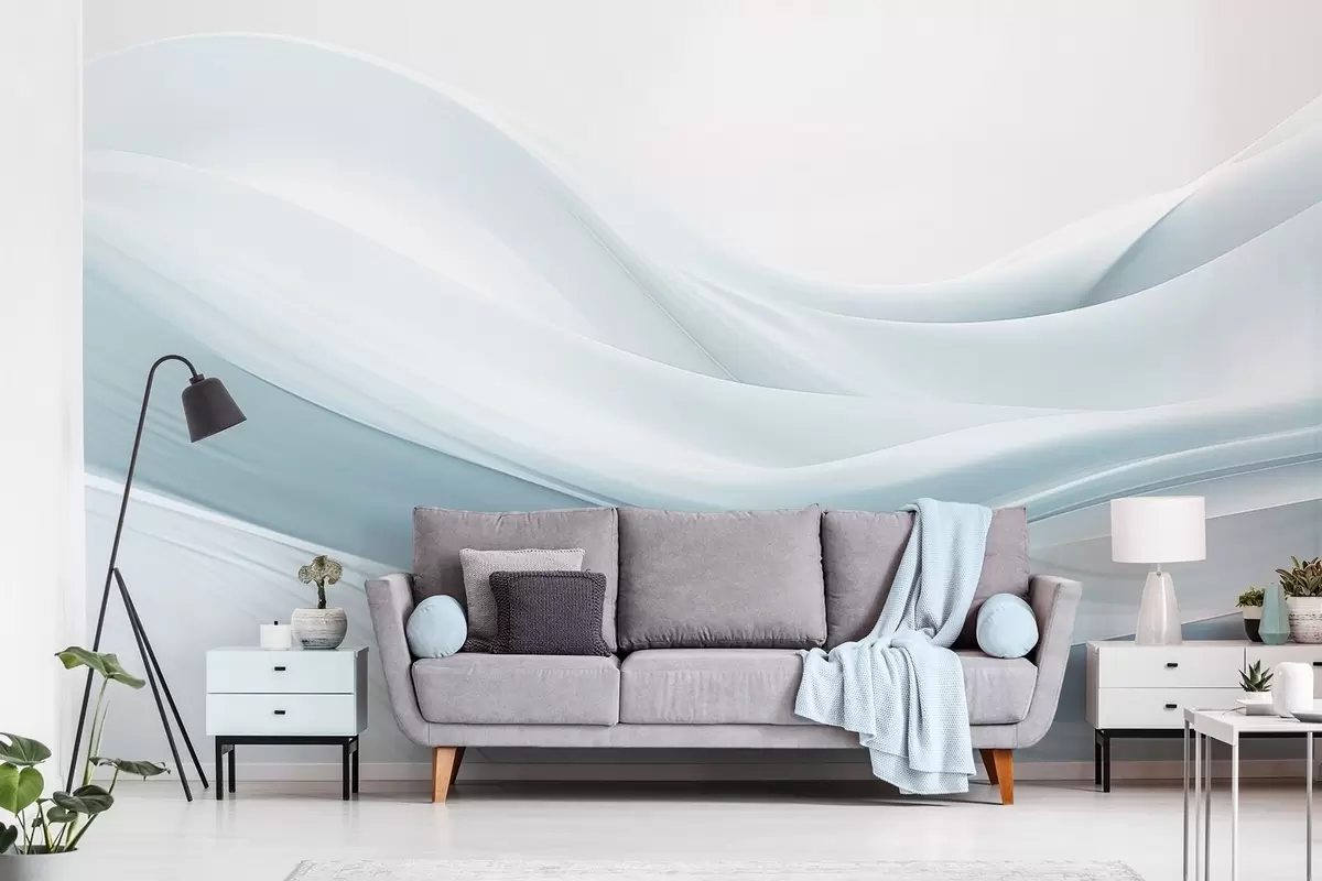 Zidne murale Plavi valovi od tkanine u minimalističkom apstraktnom stilu br. w09279v2