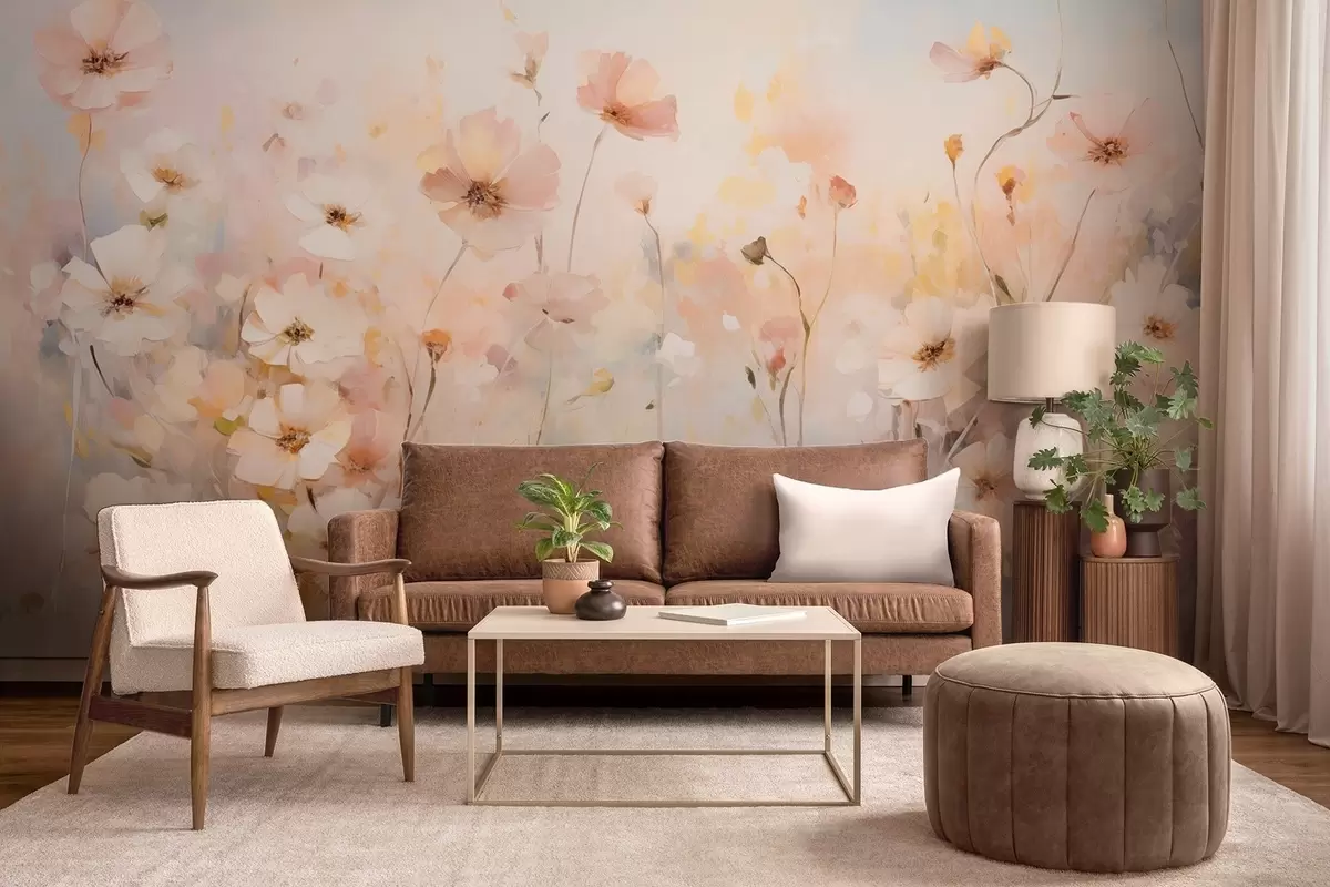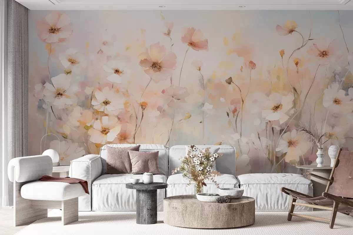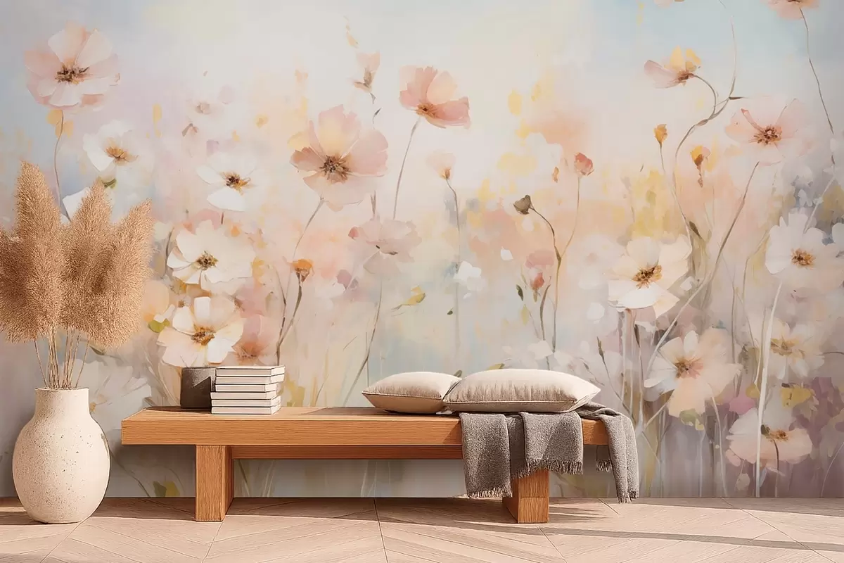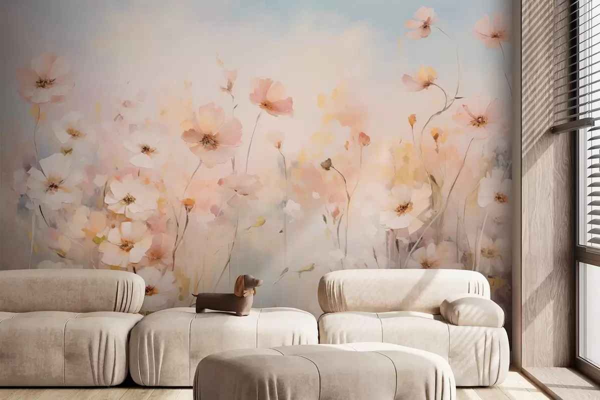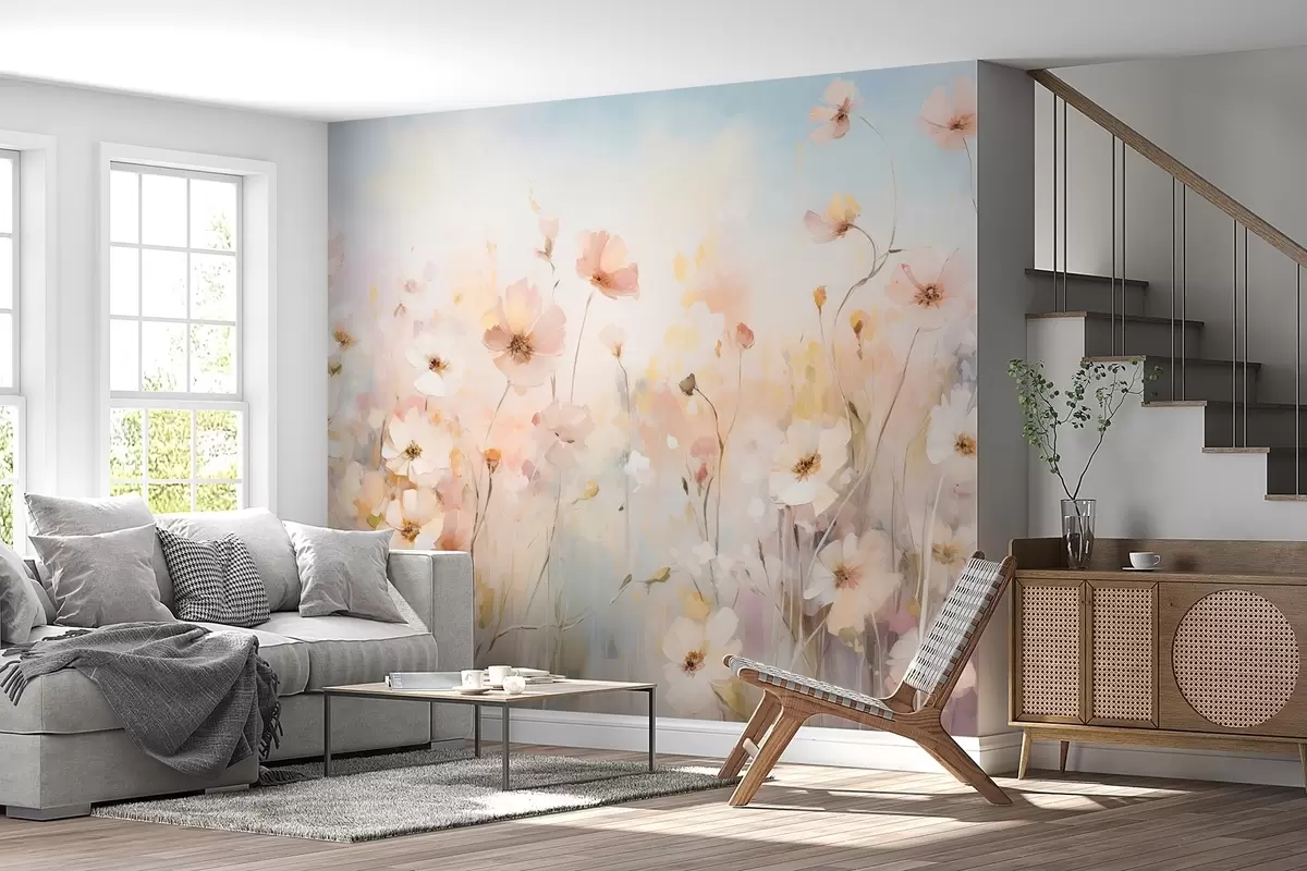 Zidne murale Divlje cvijeće u pastelnim nijansama u stilu akvarela br. w09280