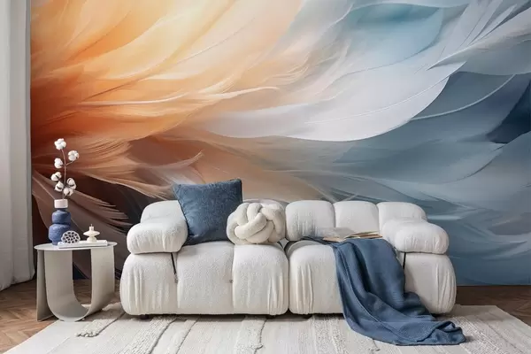 Zidne murale Nježno perje u narančastim i plavim gradijentnim tonovima br. w09282