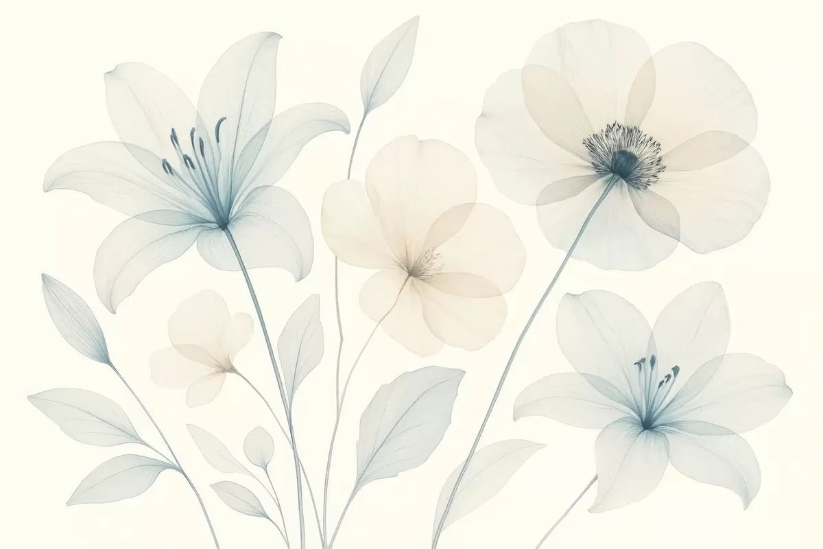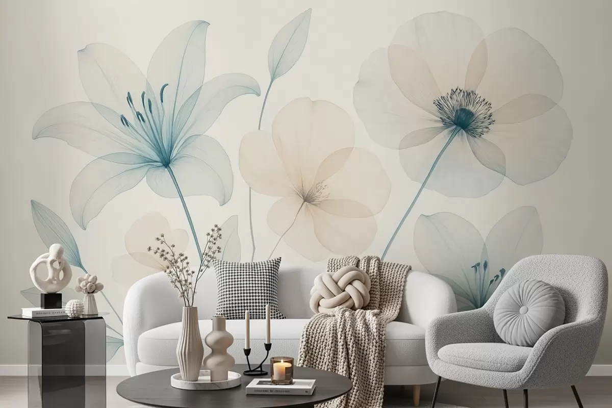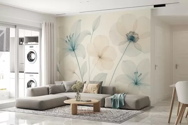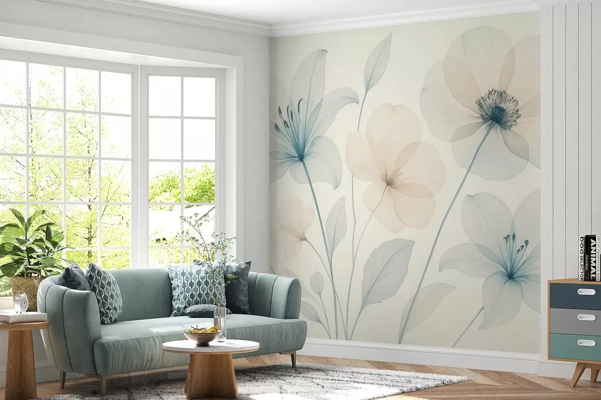 Zidne murale Nježno cvijeće u pastelno plavoj i krem akvarelnom stilu br. w09287