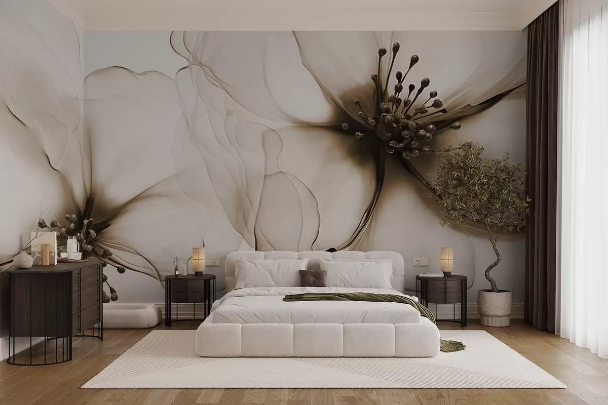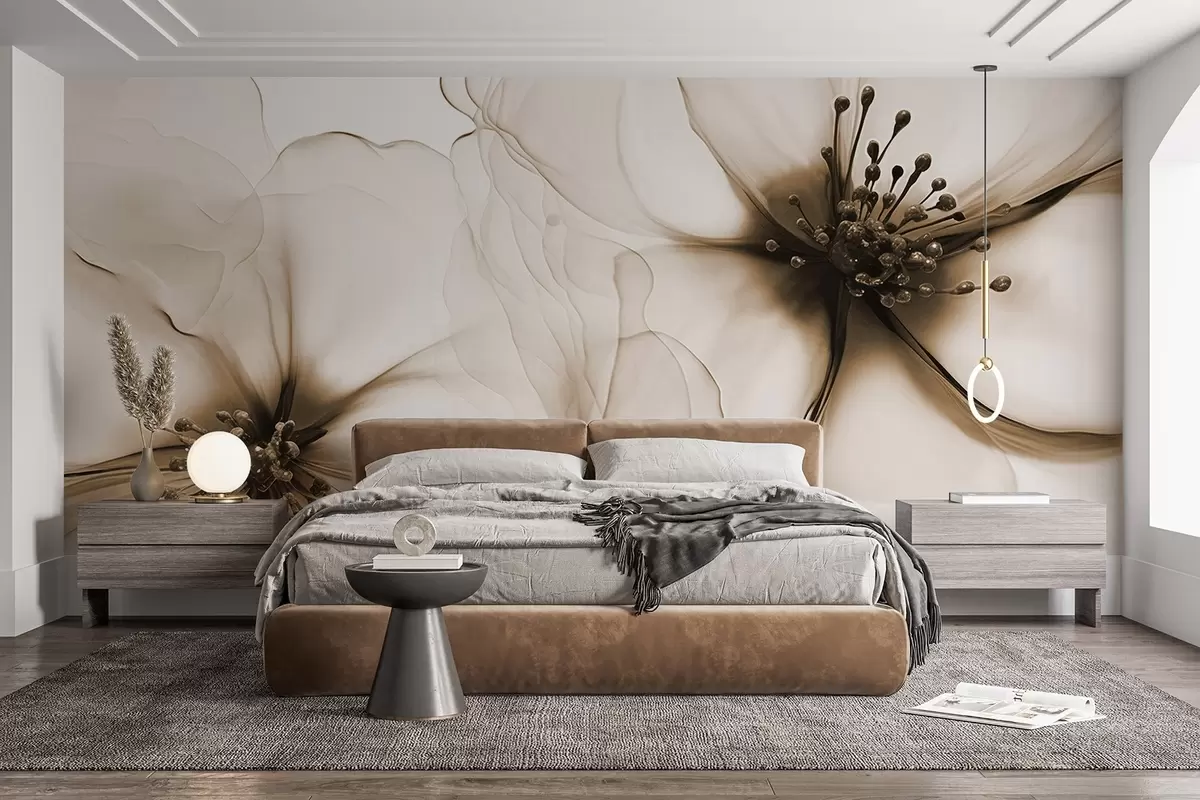 Zidne murale Dva prozirna teksturirana smeđa cvijeta s vidljivim prašnicima, preklapajućim nježnim laticama i mekom, tekućom teksturom br. w09295