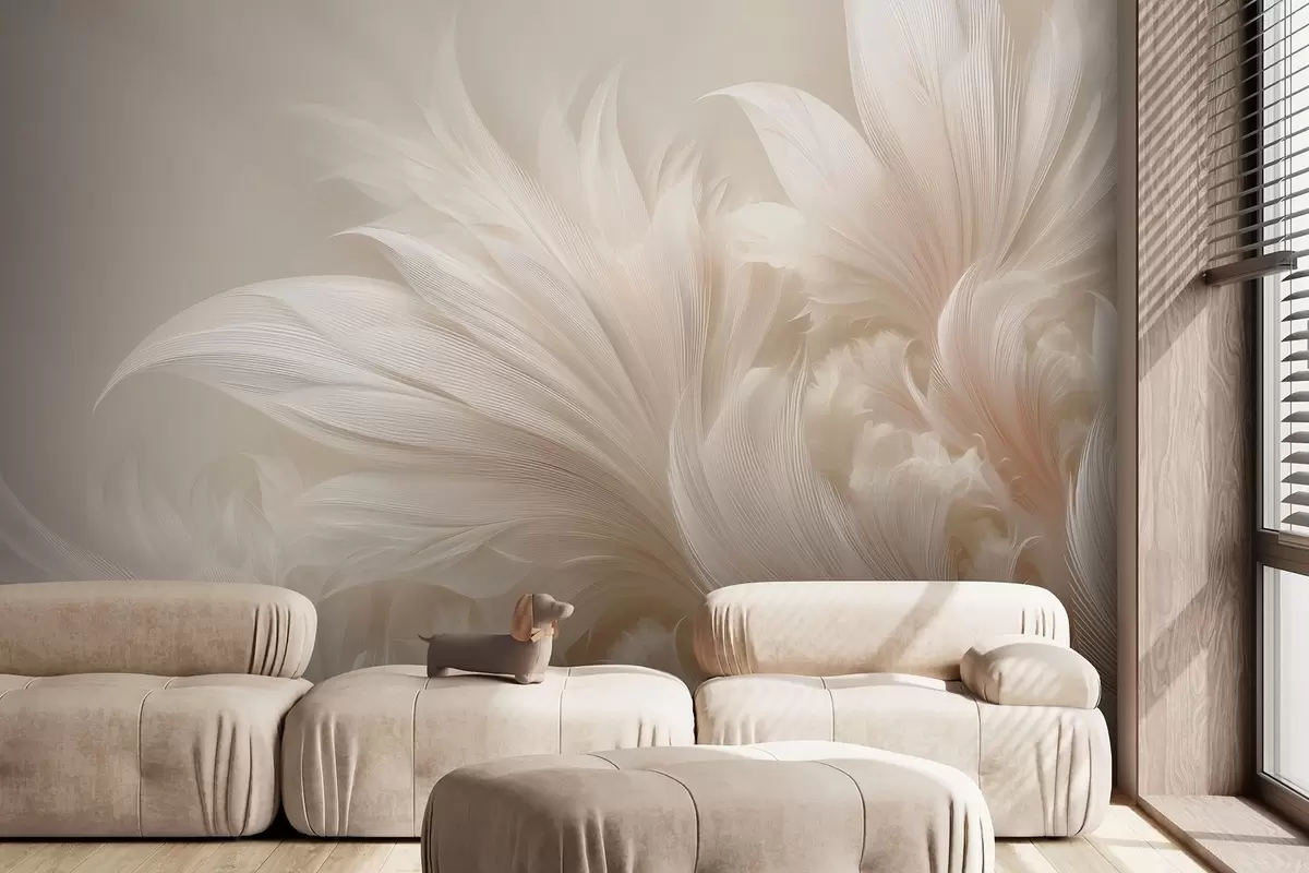 Zidne murale Betežno perje u nijansama kreme vanilije br. w09302