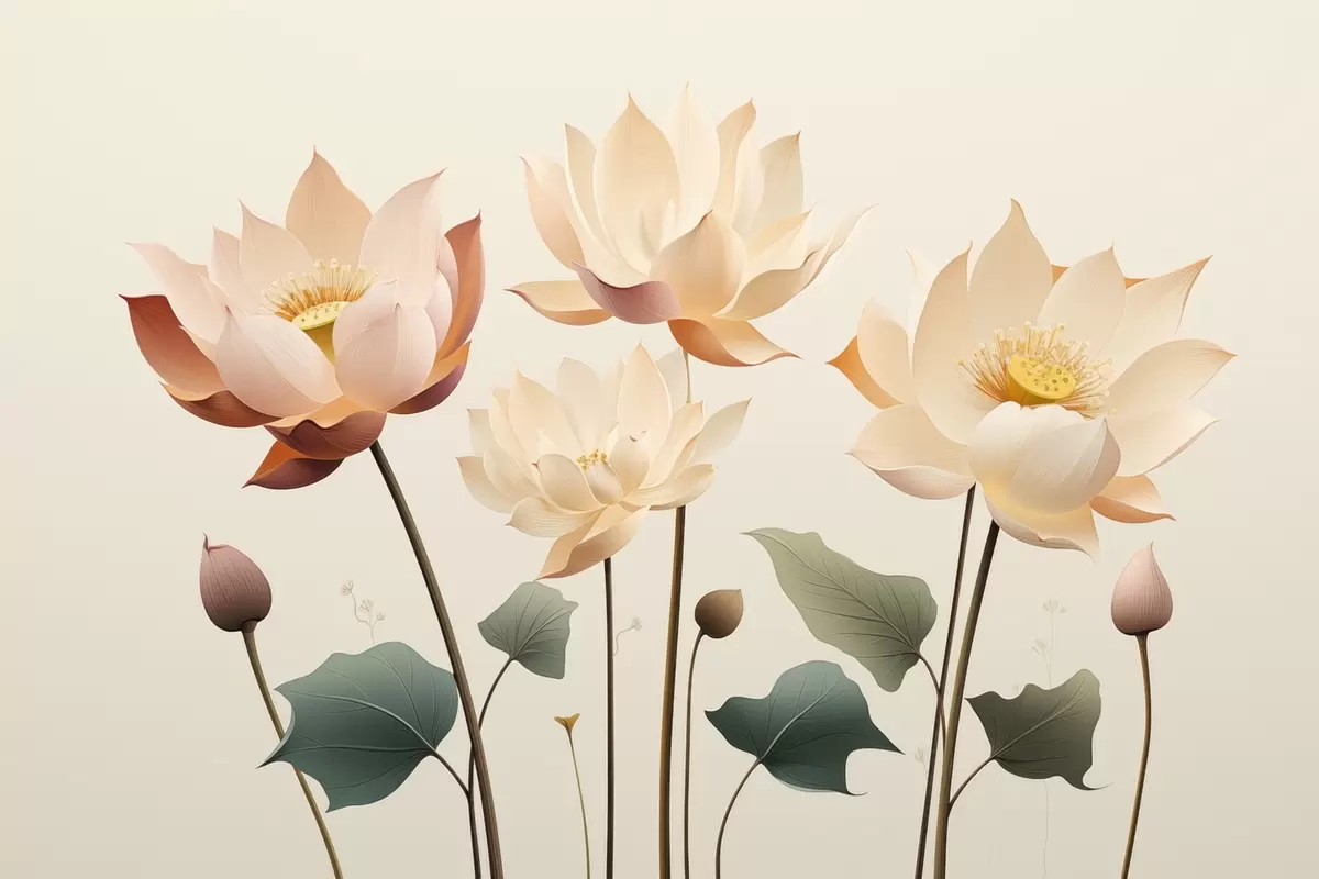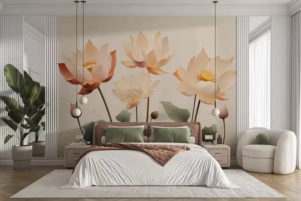 Zidne murale Elegantni lotosovi cvjetovi u nježnoj pastelnoj paleti br. w09306