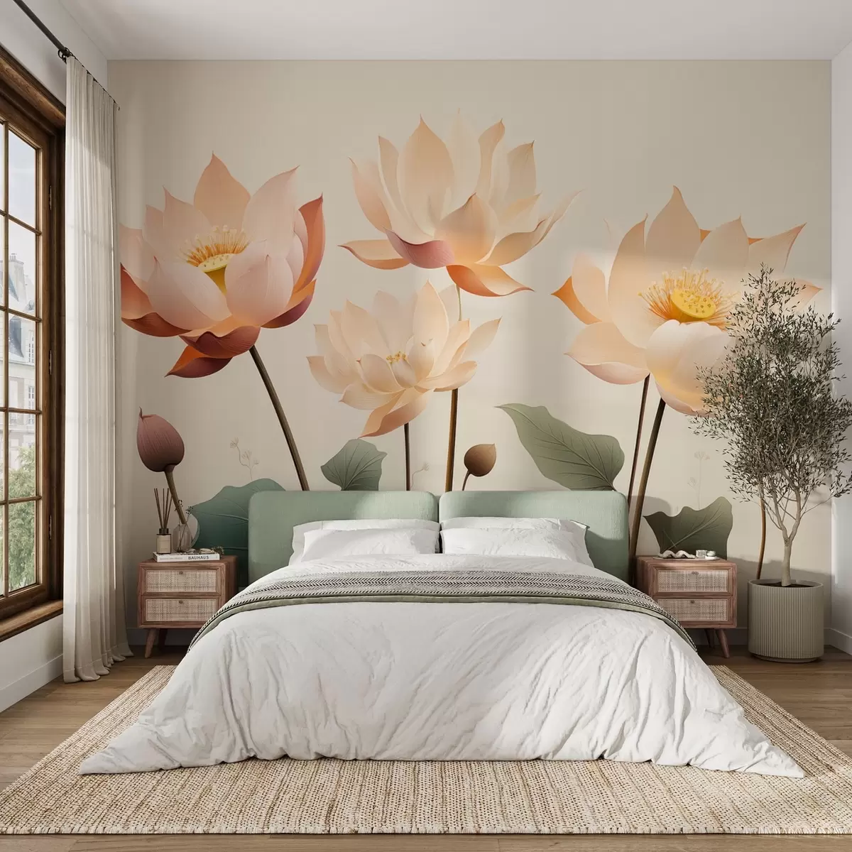Zidne murale Elegantni lotosovi cvjetovi u nježnoj pastelnoj paleti br. w09306