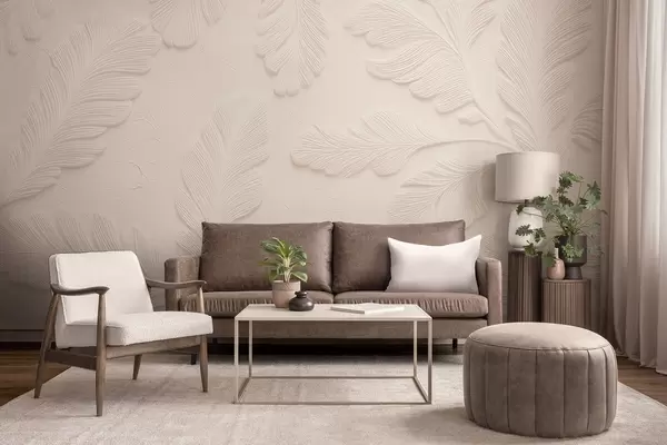 Zidne murale Reljefno lišće na svijetloj pozadini s efektom napuknuća br. w09309