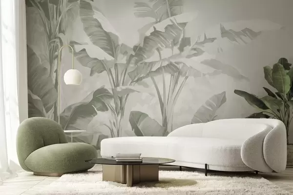 Zidne murale Tropski listovi banane u nježnim zelenim nijansama br. w09311v1