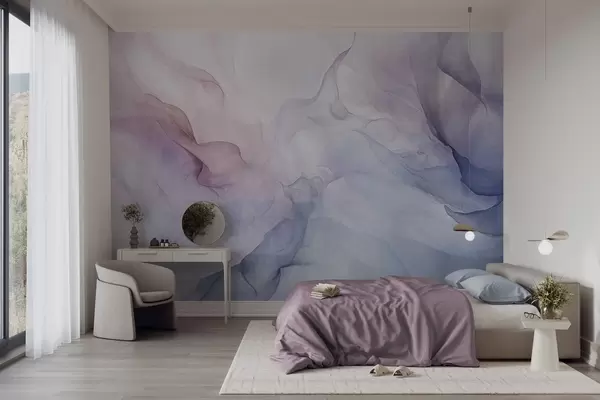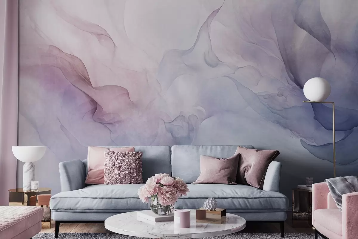 Zidne murale Apstraktna teksturirana slika s tekućim pastelnim nijansama ružičaste, ljubičaste i plave koja stvara mekan efekt br. w09318