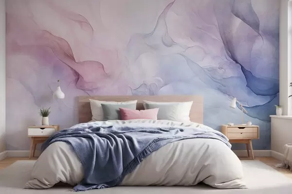 Zidne murale Apstraktna teksturirana slika s tekućim pastelnim nijansama ružičaste, ljubičaste i plave koja stvara mekan efekt br. w09318