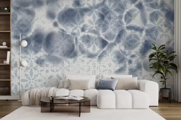 Zidne murale Apstraktna teksturirana umjetnost s plavim cvjetnim printom, izblijedjelim i zamućenim efektom, stvarajući meku i sanjivu atmosferu br. w09322