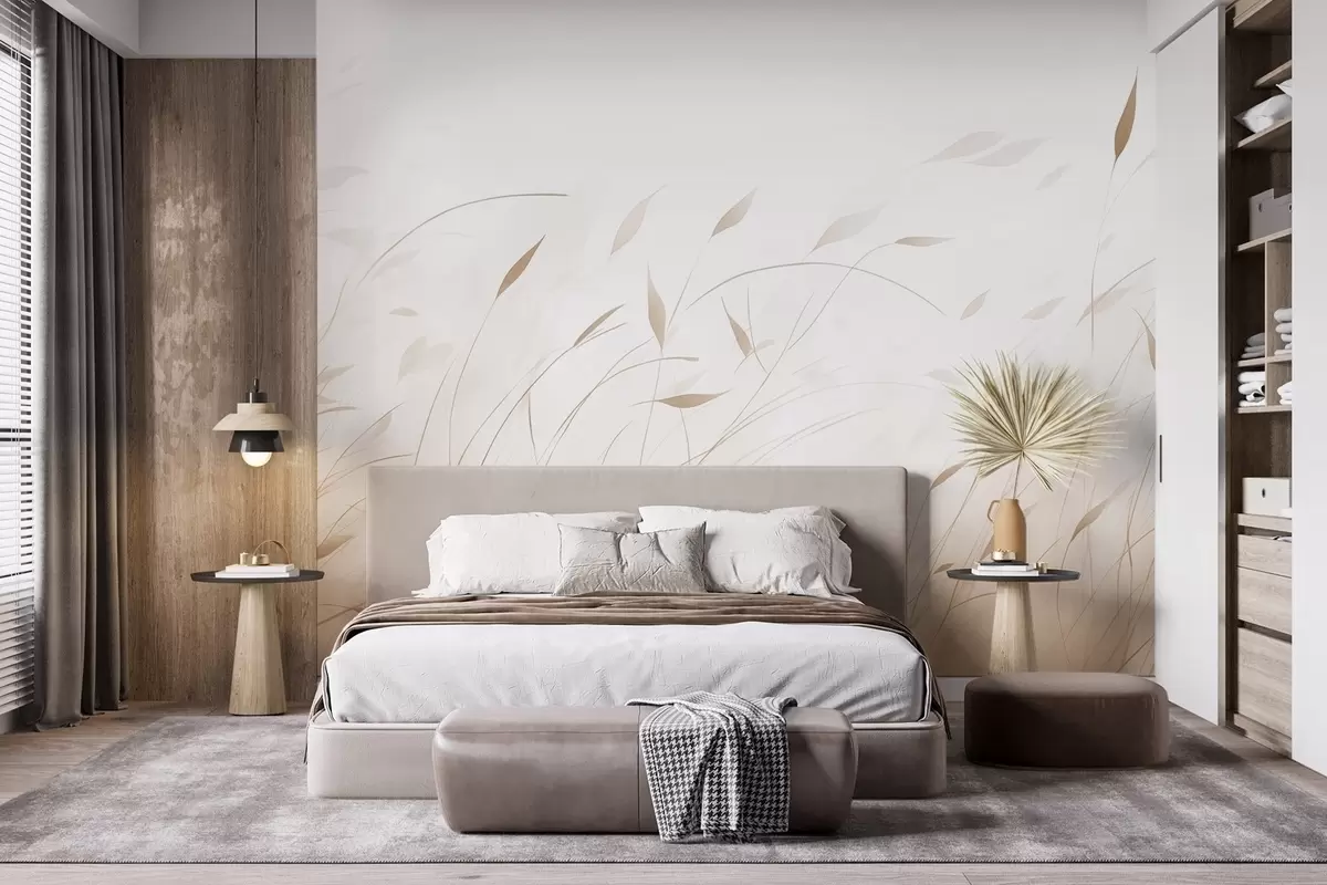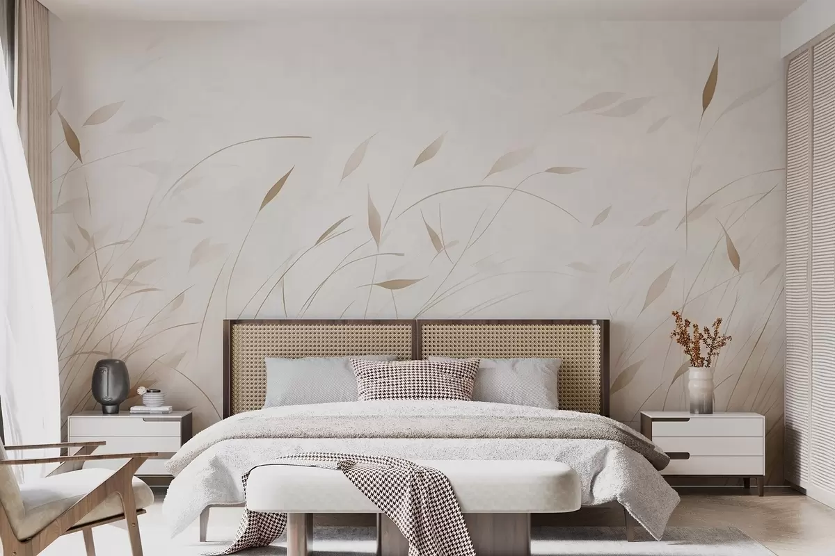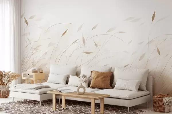 Zidne murale Trava na vjetru u akvarelnom stilu u bež nijansama br. w09331v1