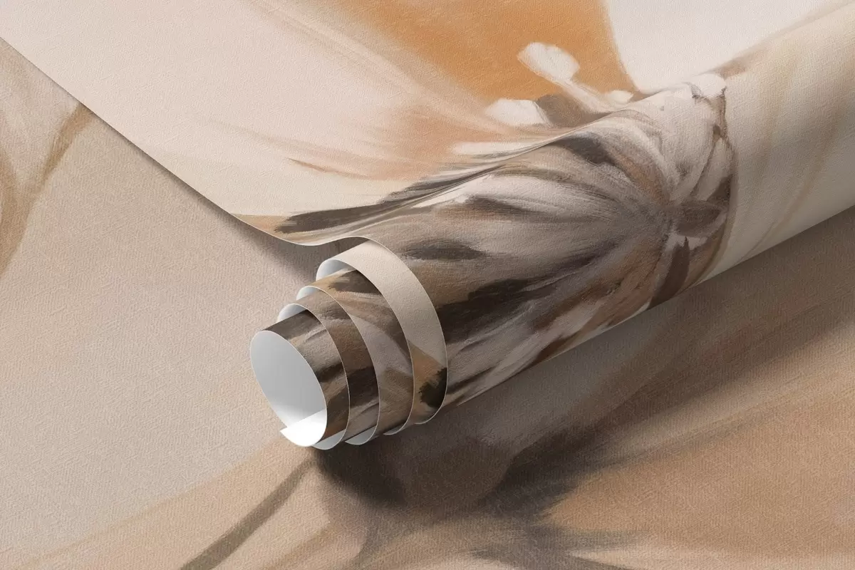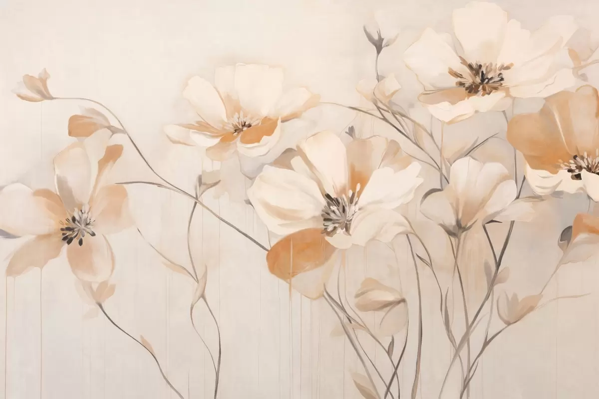 Zidne murale Bijelo i narančasto teksturirano cvijeće s dugim stabljikama, svijetla pozadina, meke boje, elegantna kompozicija, nježni potezi kistom br. w09335