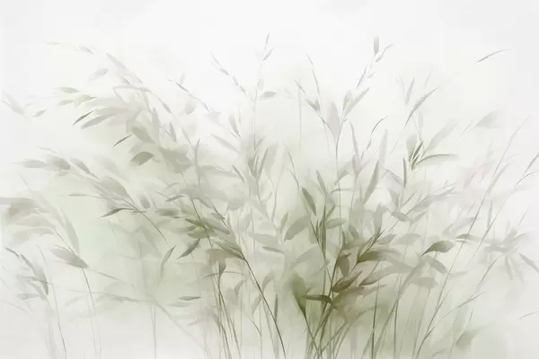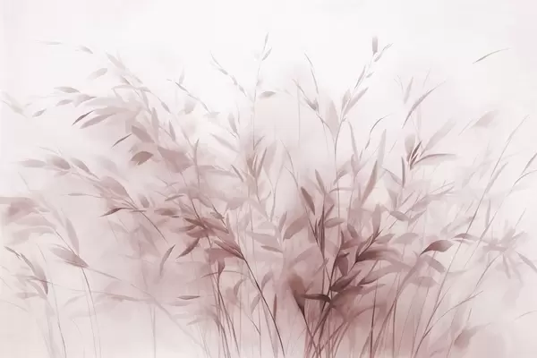 Zidne murale Trava i korov s tankim lišćem i stabljikama, svijetlozelene i smeđe boje, meki i nježni potezi kistom, minimalistički print br. w09342