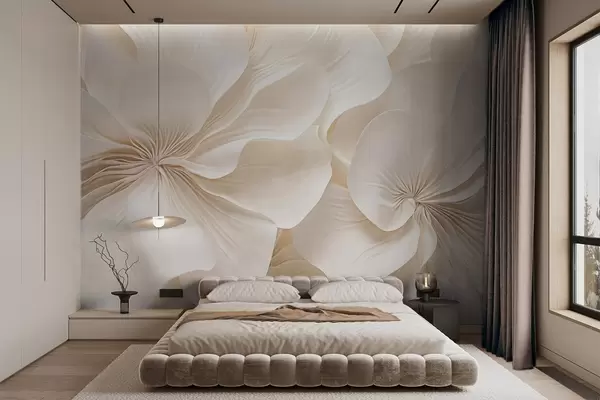 zidne murale Krupni plan kremasto teksturiranog cvijeća s nježnim, tekućim laticama, stvarajući mekan, elegantan i teksturiran cvjetni aranžman w09346