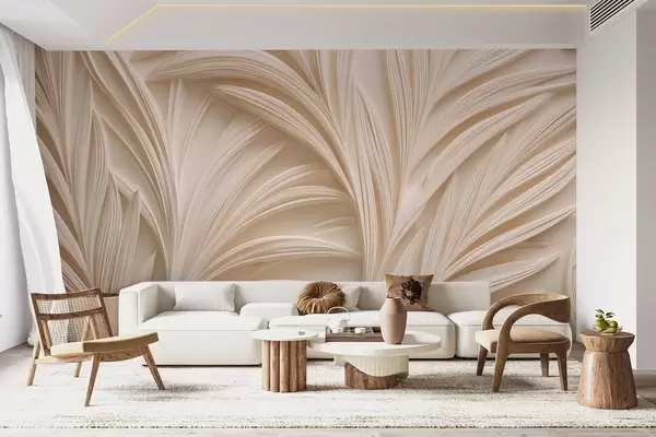 Zidne murale Dekorativno bež lišće u 3D stilu br. w09351