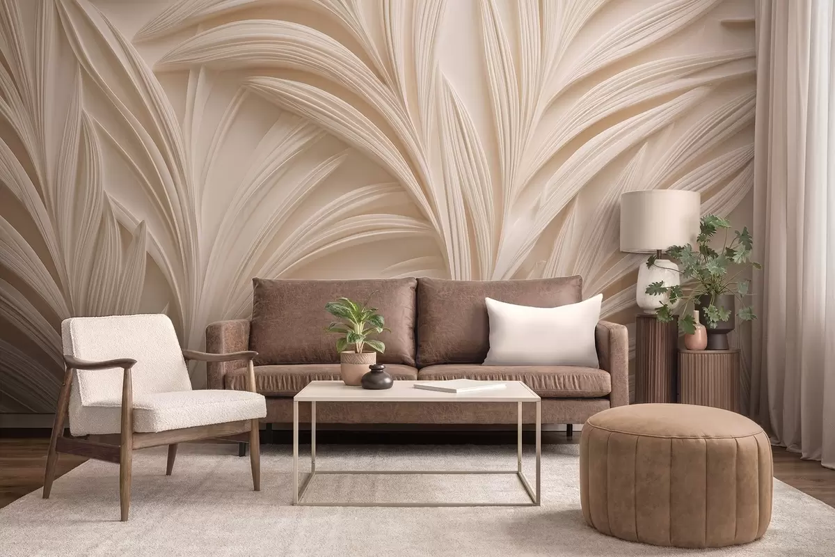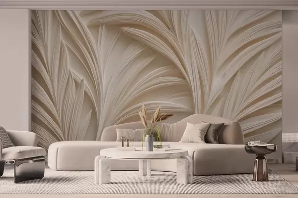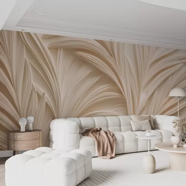 Zidne murale Dekorativno bež lišće u 3D stilu br. w09351