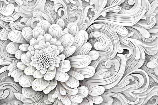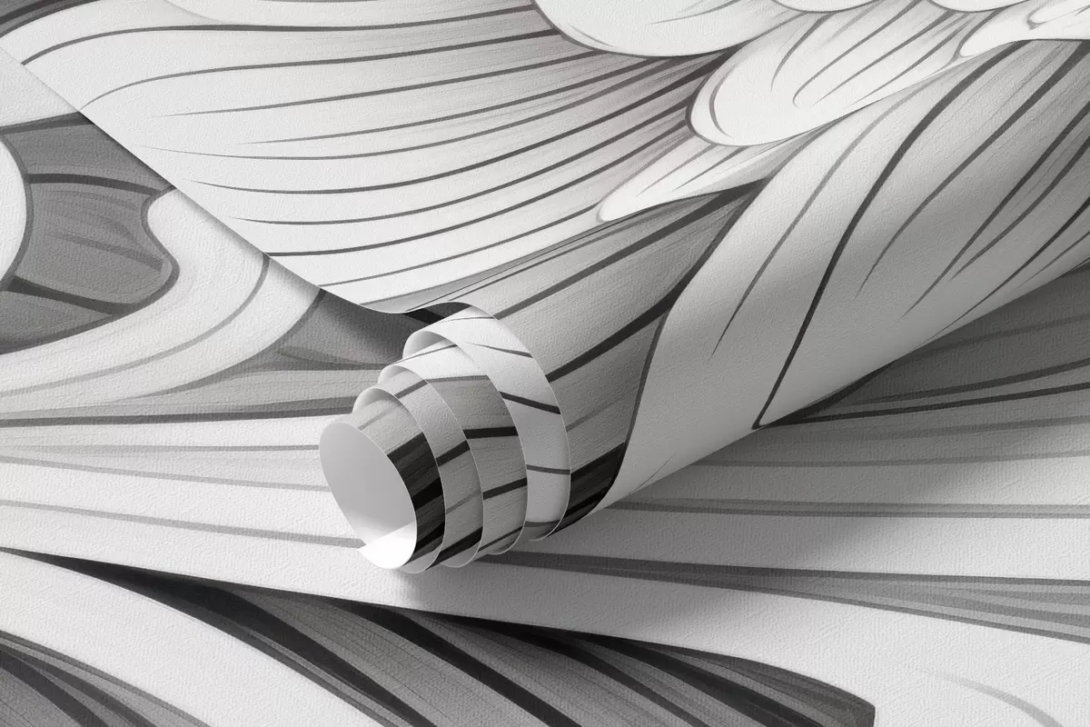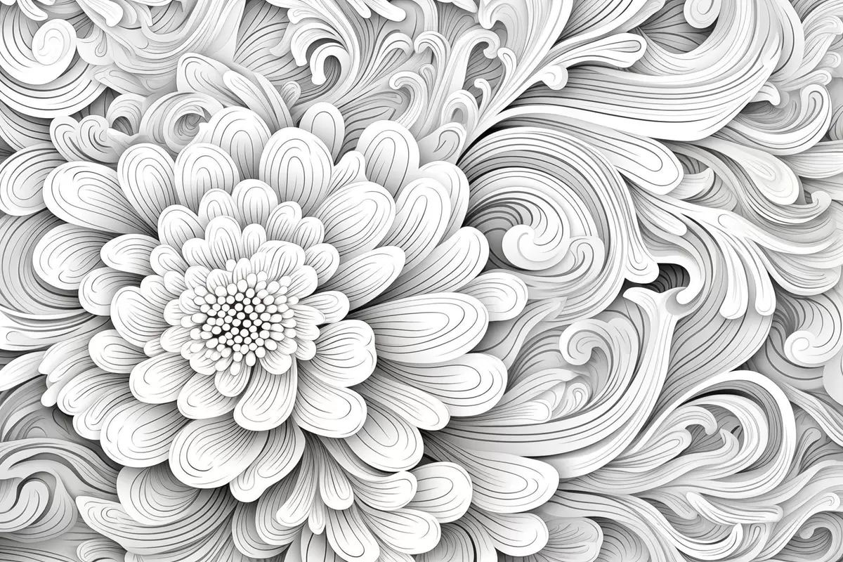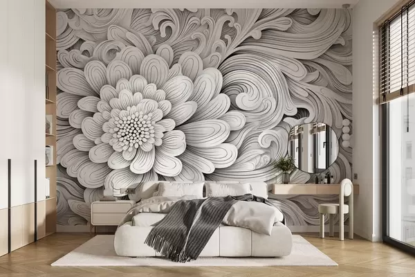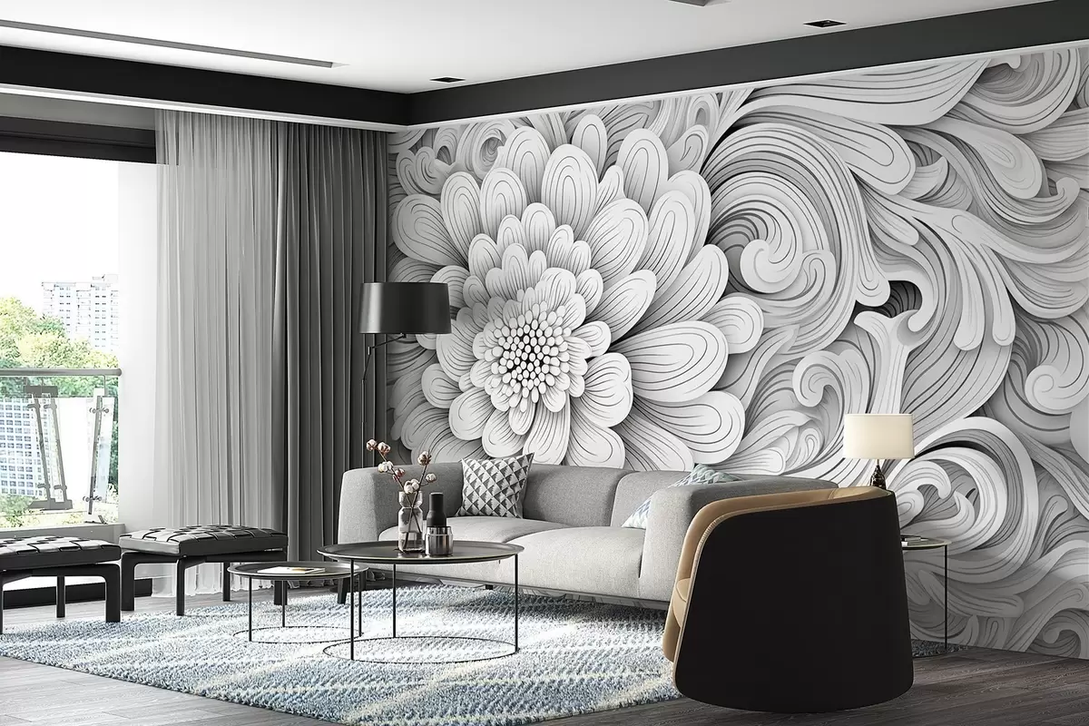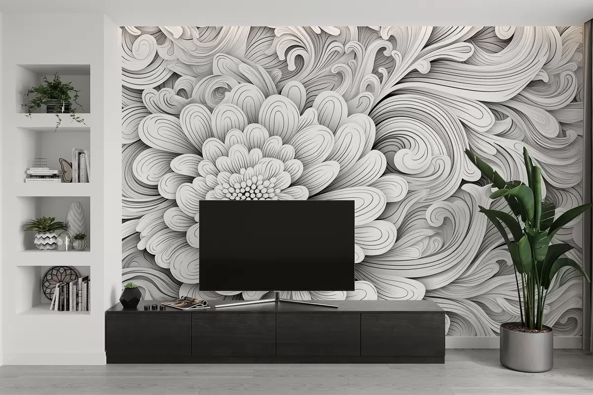 Zidne murale Dekorativni crno-bijeli uzorak u obliku cvijeta i vrtloga br. w09355