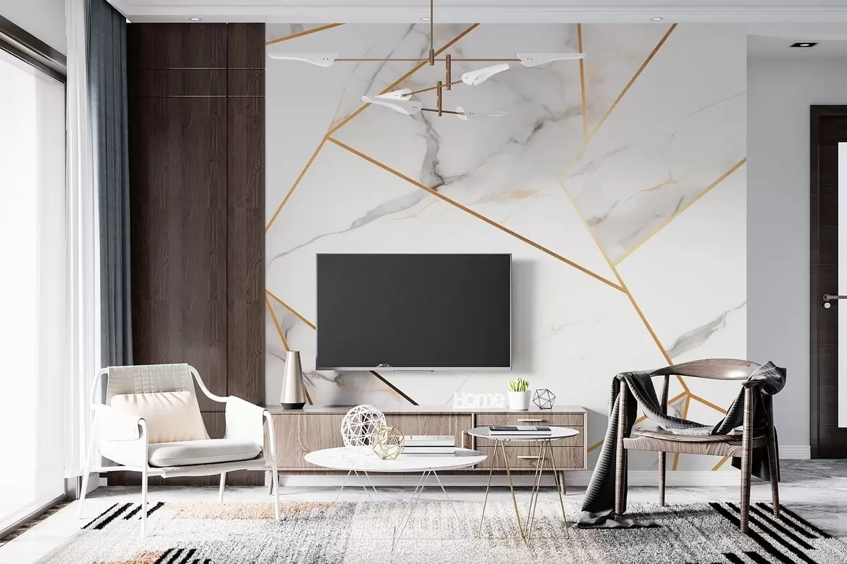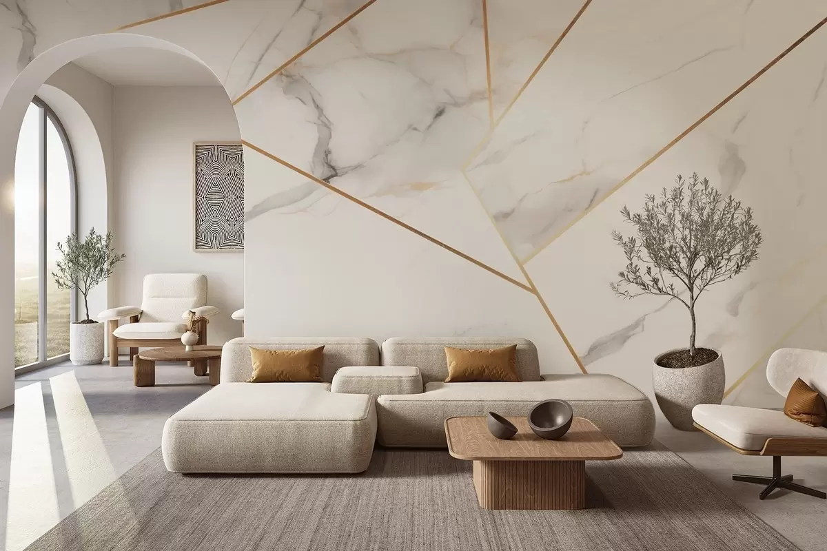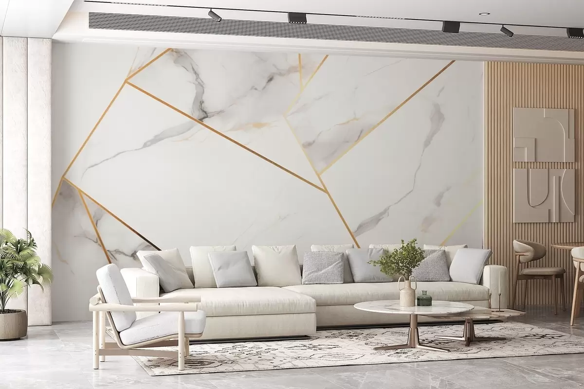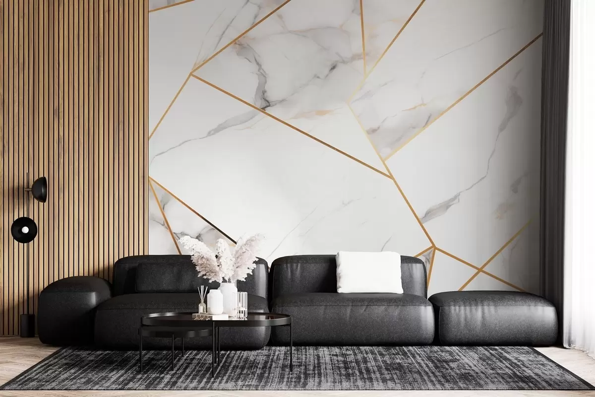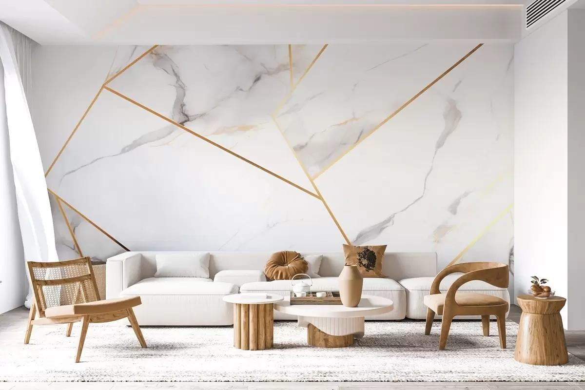 Zidne murale Imitacija mramorne površine sa žutim geometrijskim uzorkom br. w09363