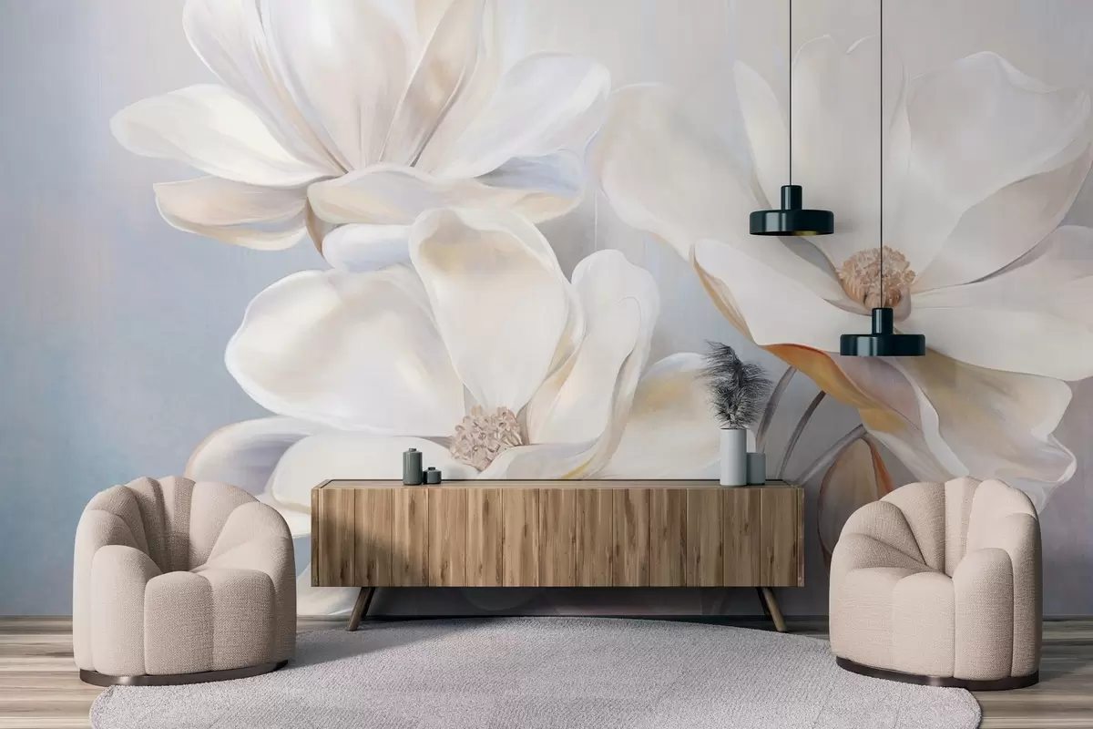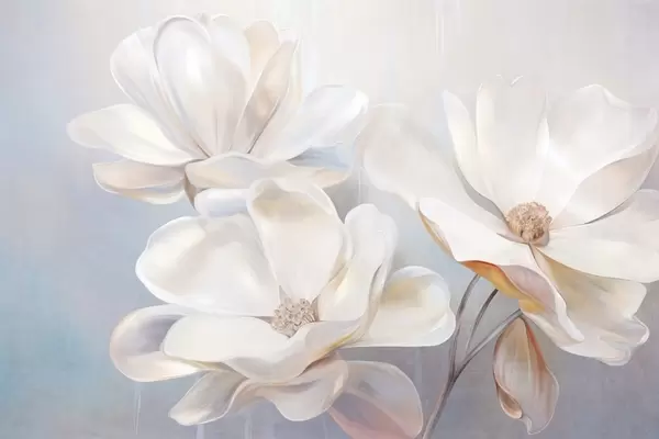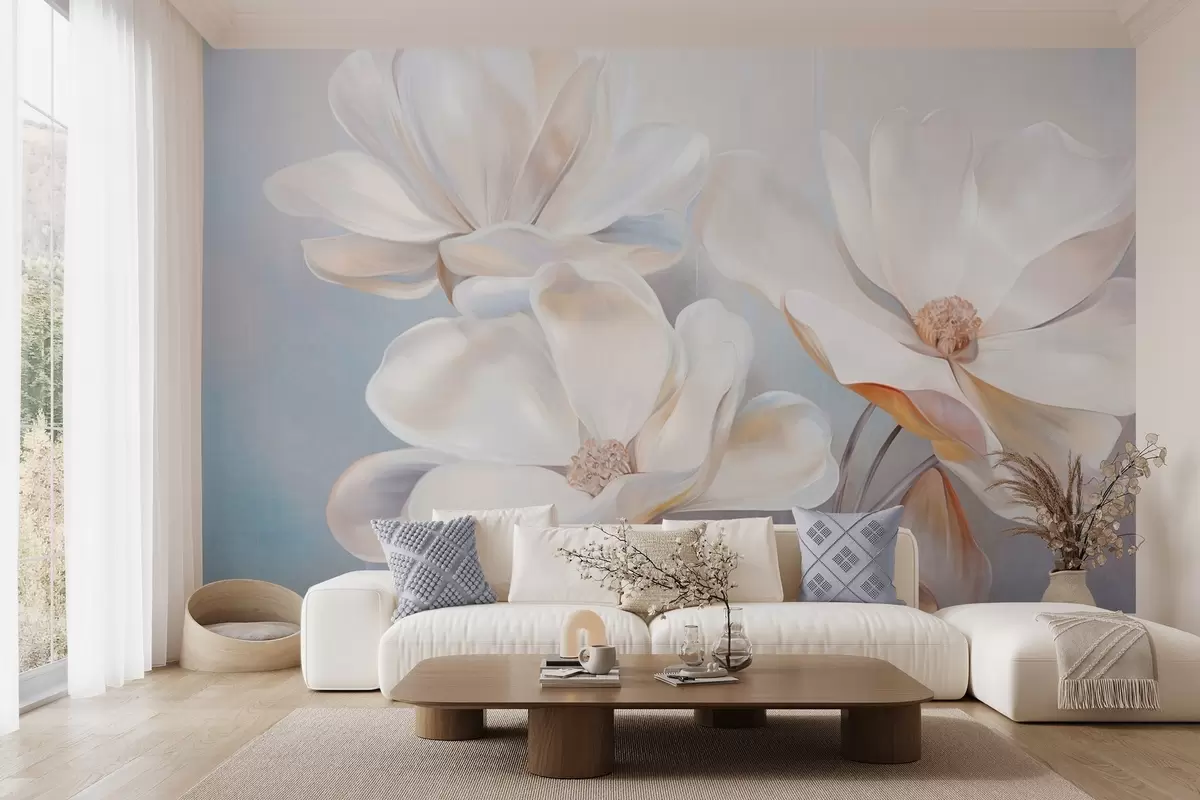 Zidne murale Bijeli fantastični cvjetovi magnolije s nježnim teksturiranim laticama, mekana, apstraktna pozadina br. w09373