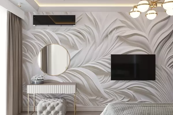 Zidne murale Apstraktno teksturirano bijelo lišće i cvjetni elementi, minimalistička estetika br. w09378