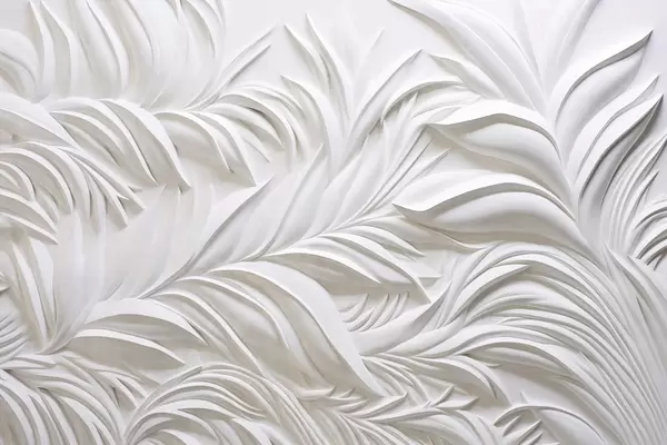 Zidne murale Apstraktno teksturirano bijelo lišće i cvjetni elementi, minimalistička estetika br. w09378