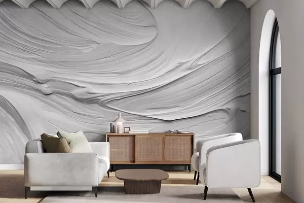 zidne murale Imitacija apstraktnih teksturiranih poteza bijele boje s vrtložnim uzorkom, neutralna, minimalistička moderna kompozicija w09394