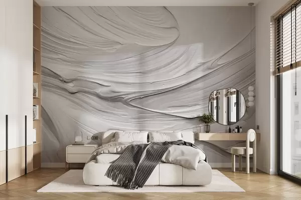 Zidne murale Imitacija apstraktnih teksturiranih poteza bijele boje s vrtložnim uzorkom, neutralna, minimalistička moderna kompozicija br. w09394