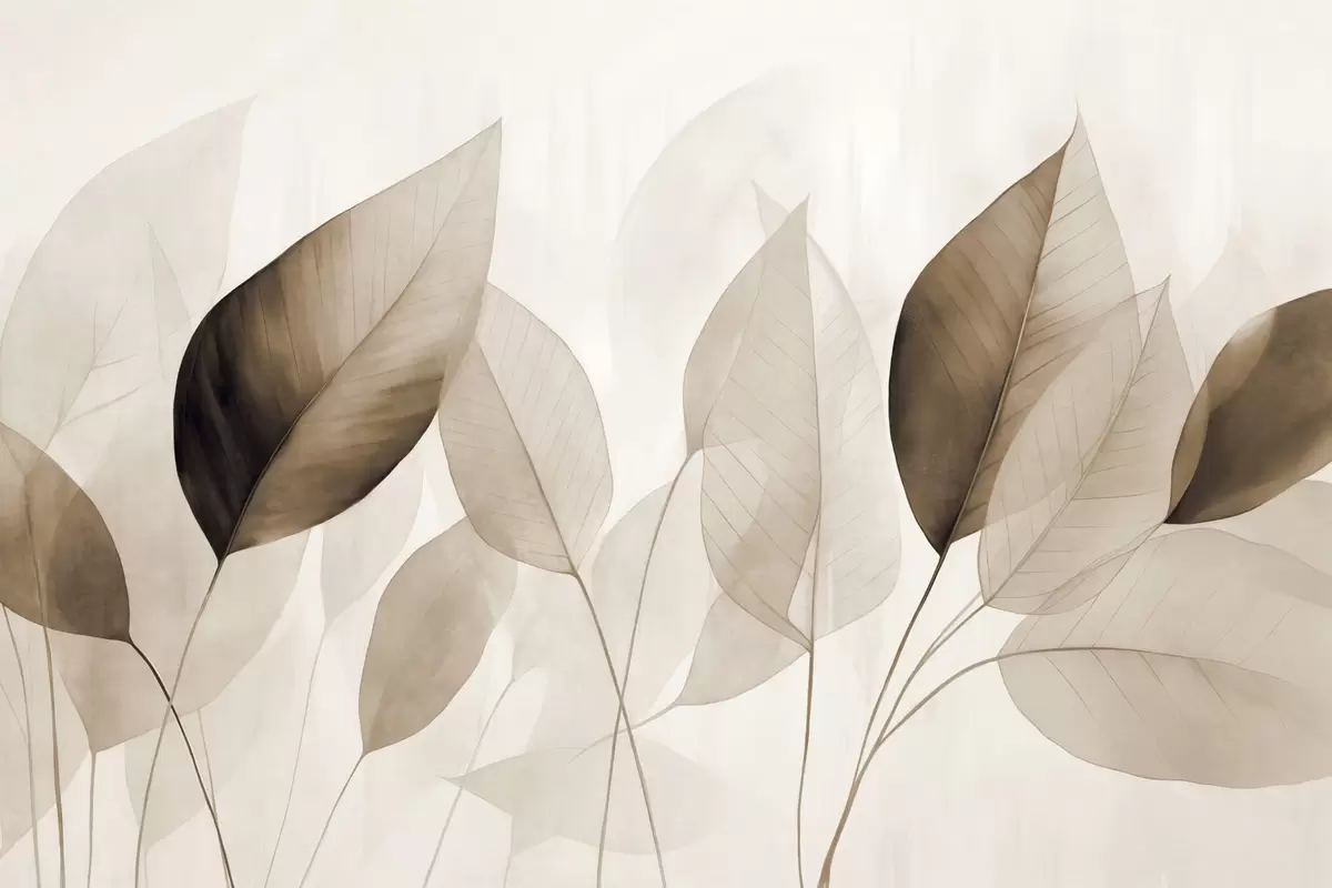 Zidne murale Teksturirana imitacija lišća u nijansama smeđe i bež s nježnim žilama i stabljikama br. w09400v1