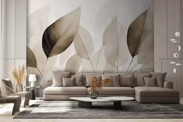 Zidne murale Teksturirana imitacija lišća u nijansama smeđe i bež s nježnim žilama i stabljikama br. w09400v1