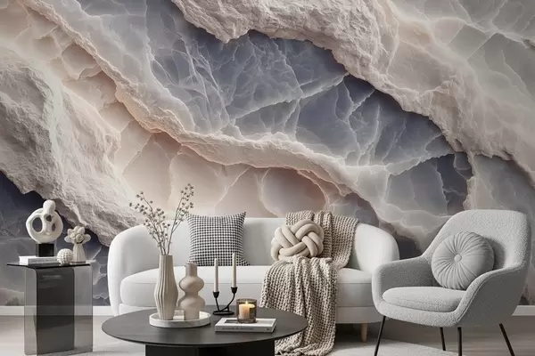 Zidne murale Elegantna apstrakcija u stilu mramornih slojeva i minerala u plavo-bež boji br. w09408