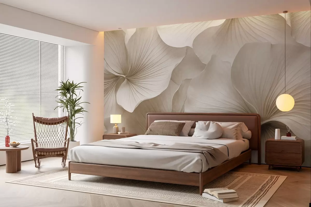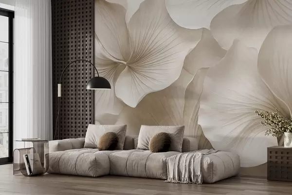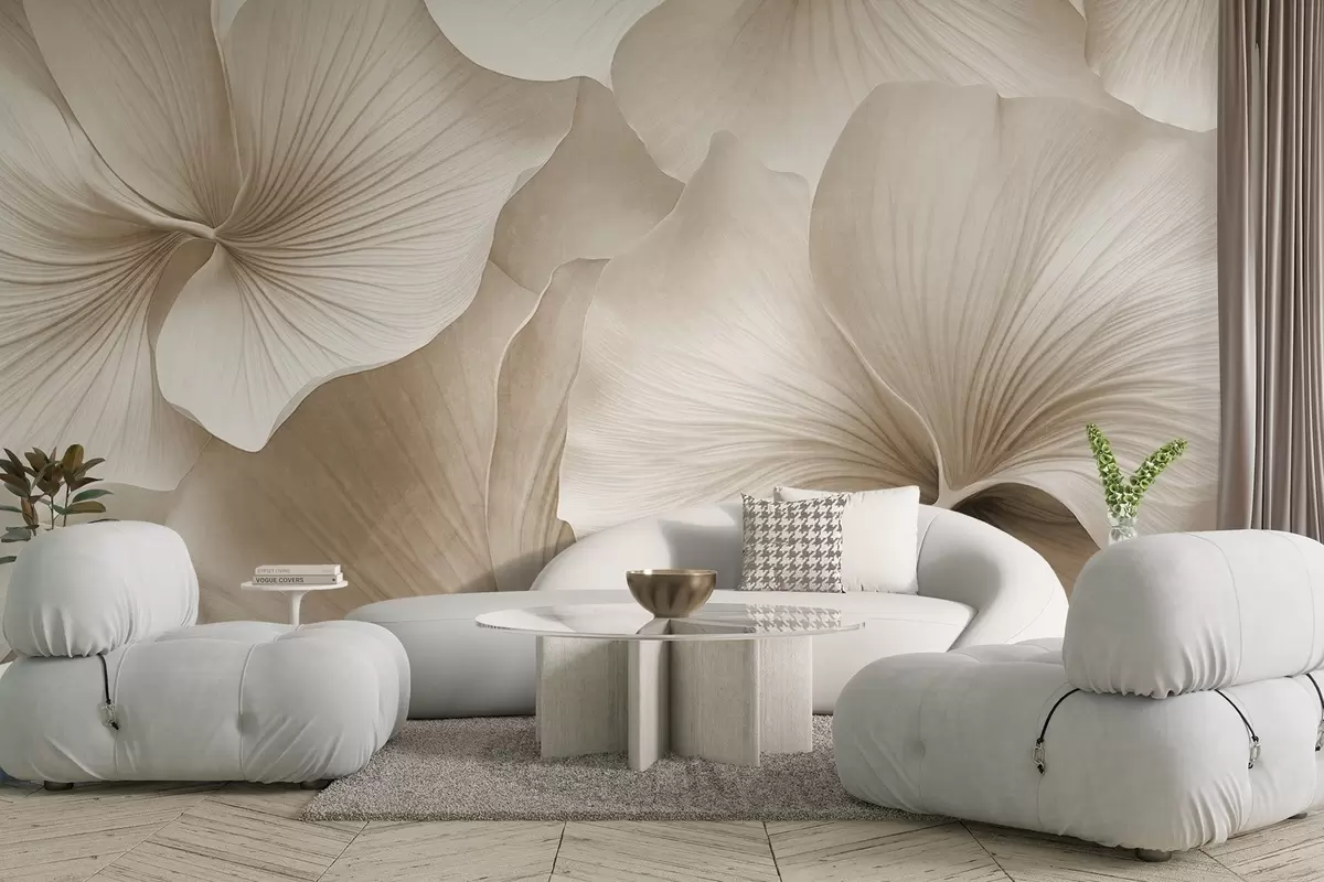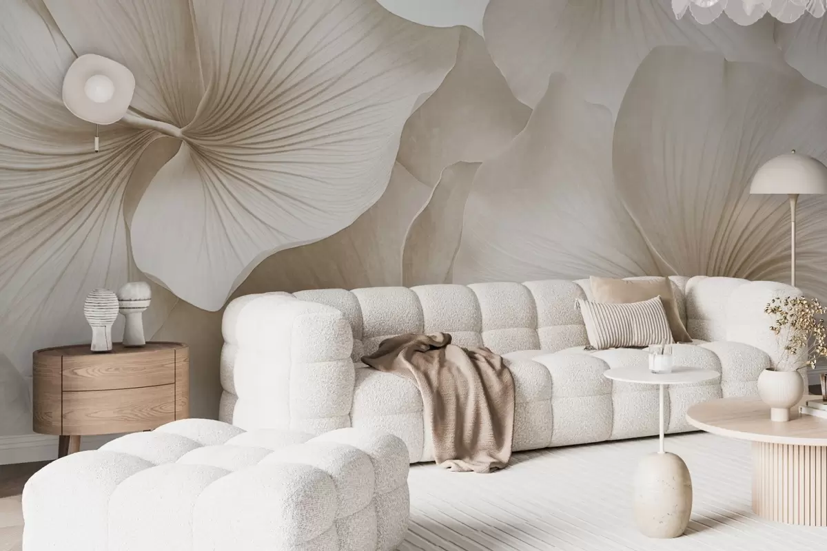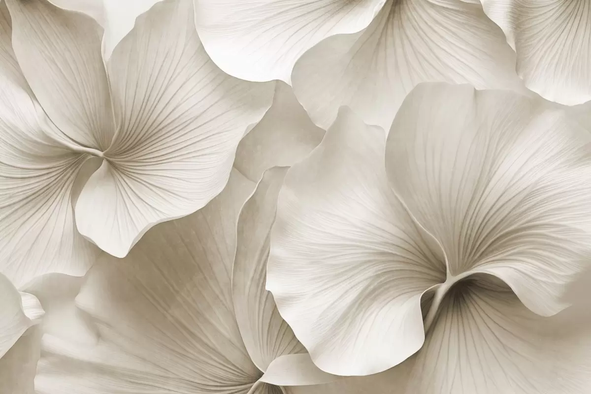 Zidne murale Bijeli i bež listovi ginka, mekane teksture, apstraktna cvjetna pozadina, minimalistički moderni stil br. w09421v1