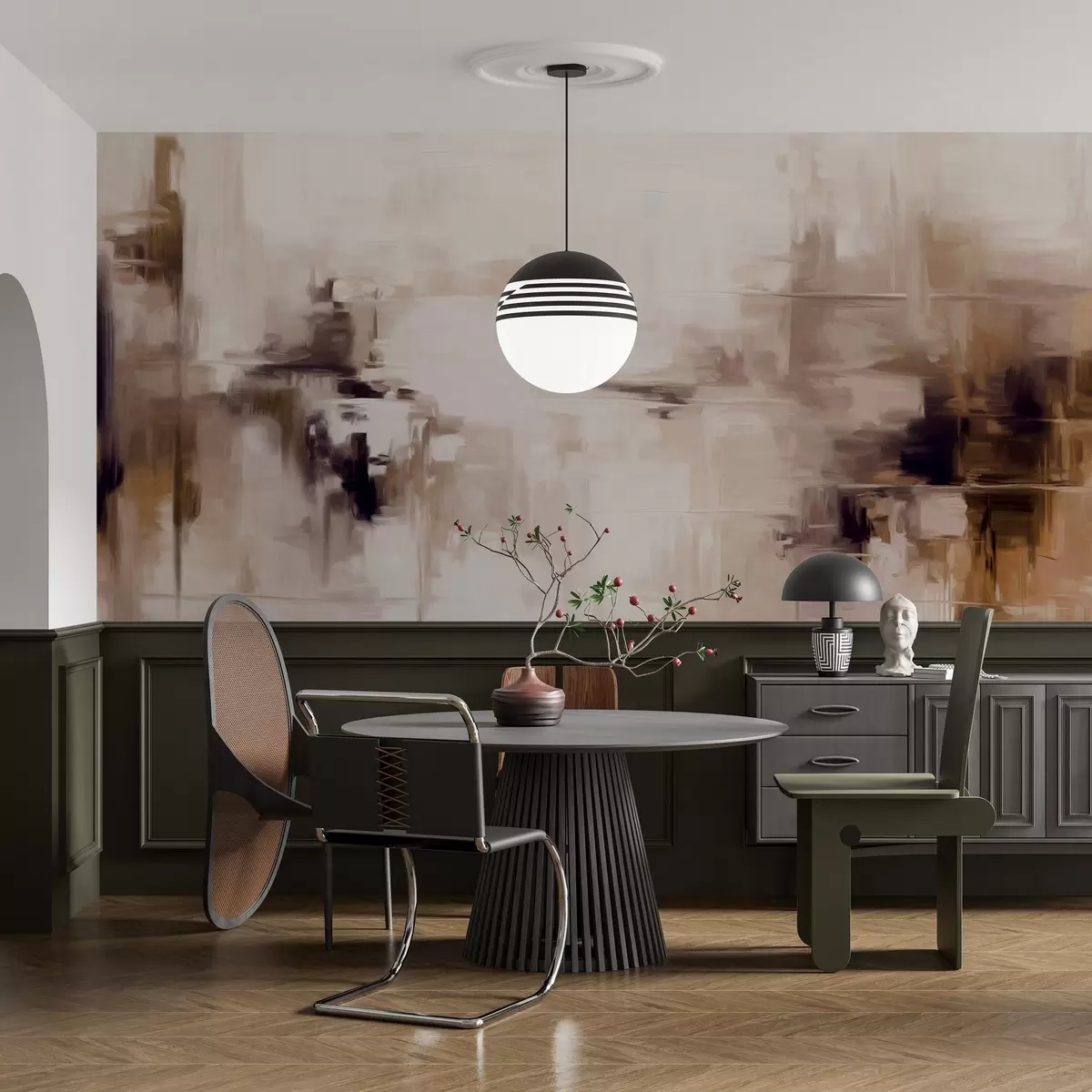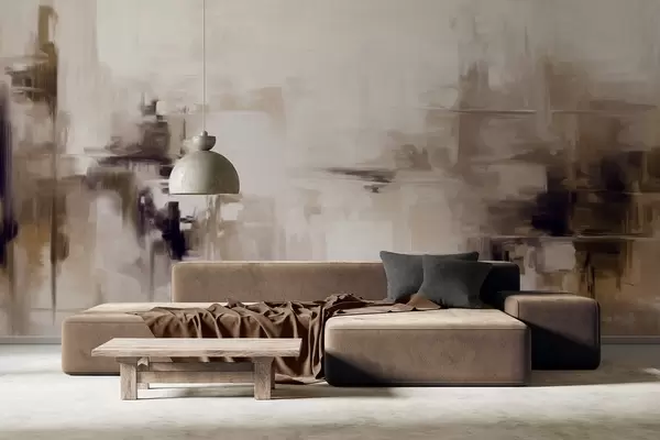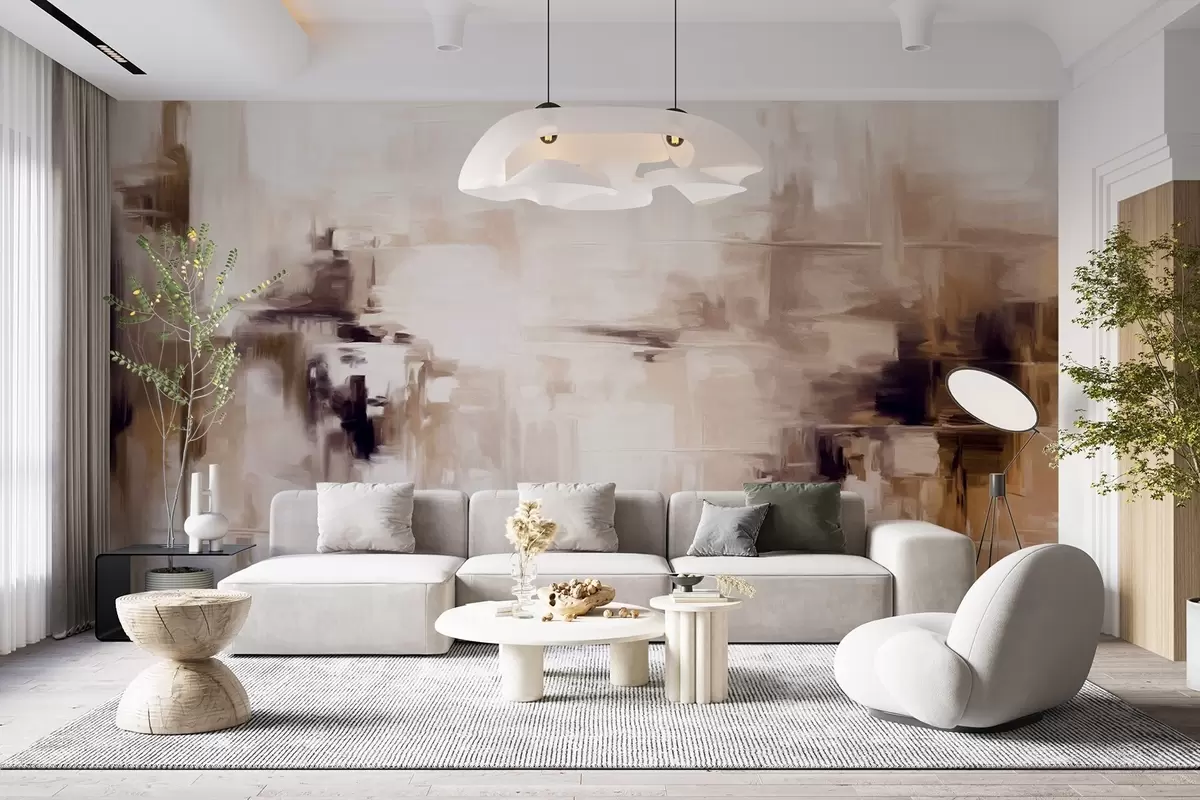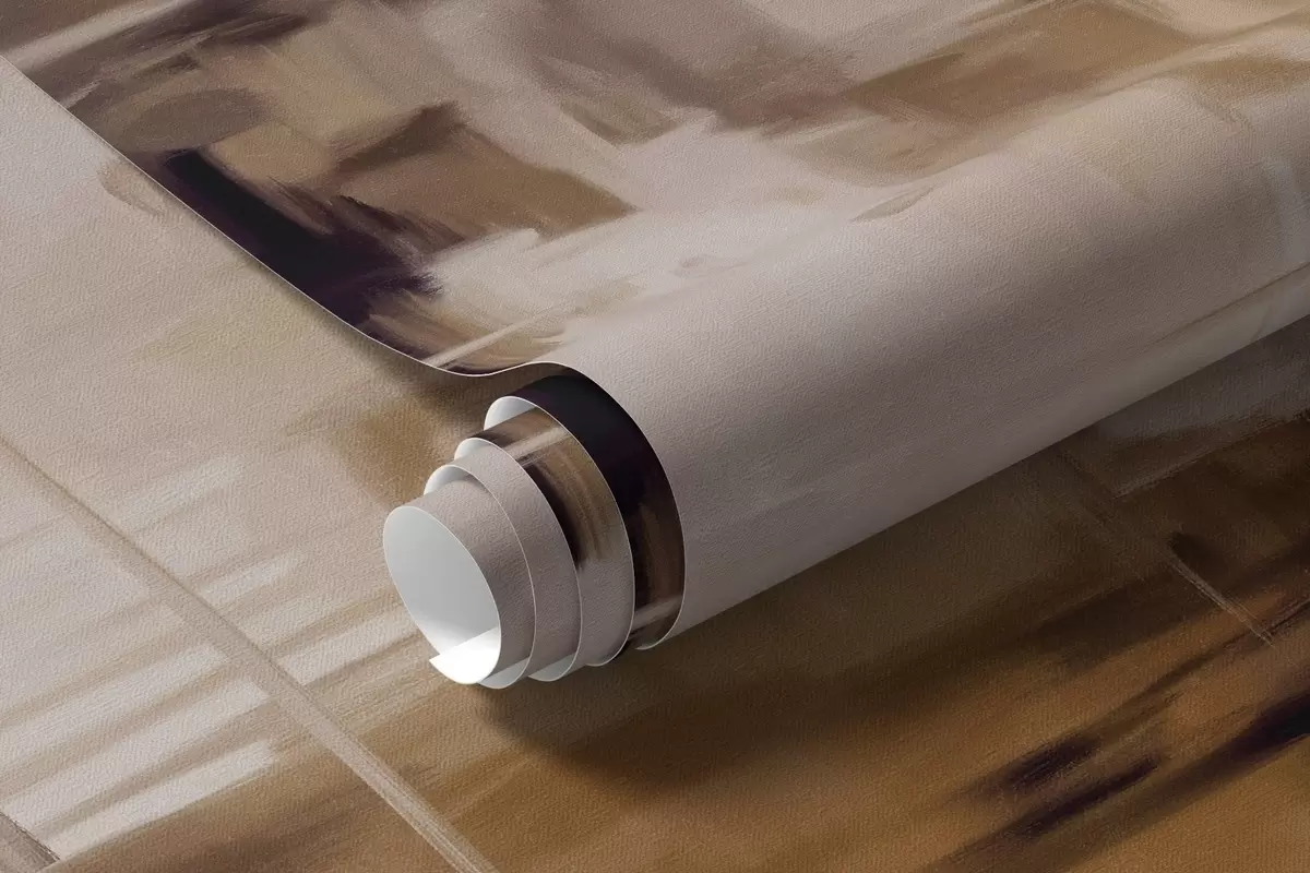 Zidne murale Imitacija apstraktne teksturirane pejzažne slike sa smeđim i bijelim potezima kista, moderni stil br. w09422v1