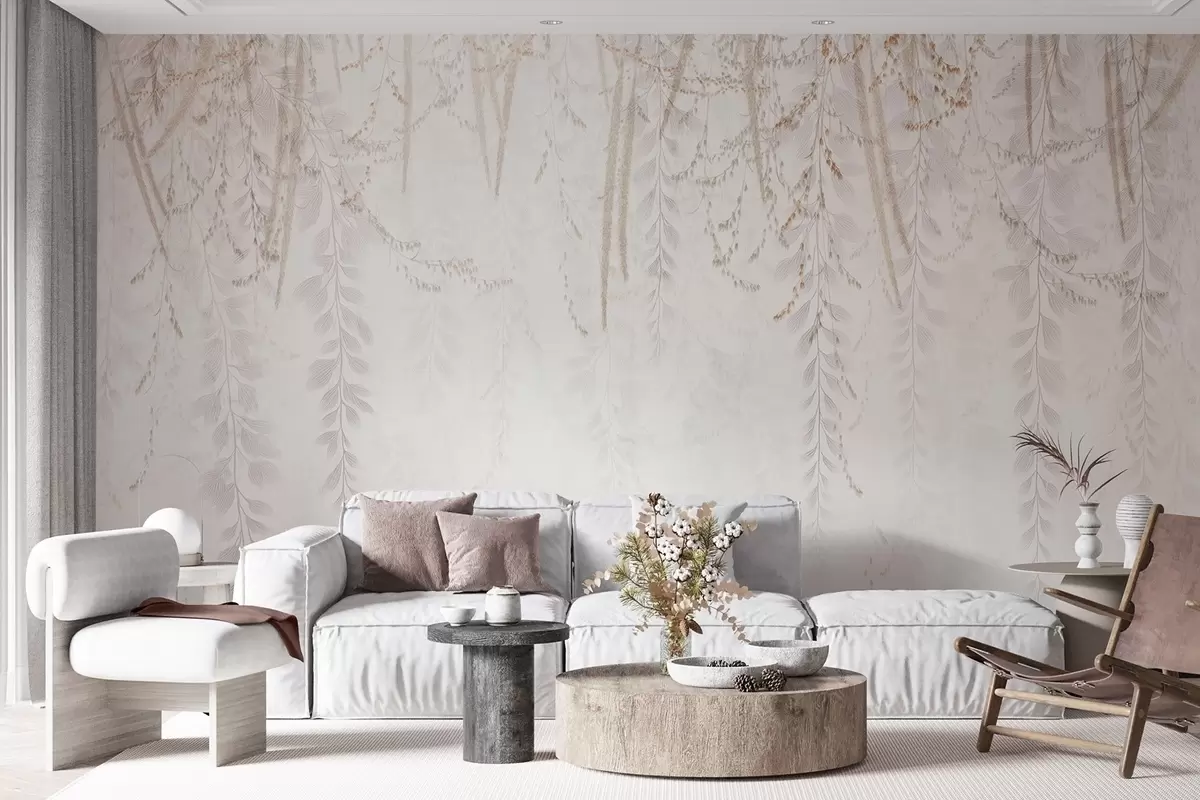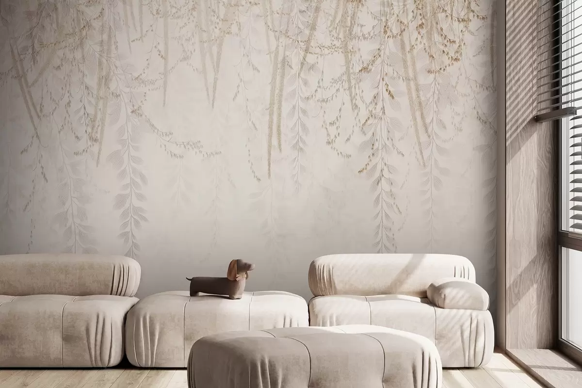 Zidne murale Lagano viseće lišće i grane u bež tonovima br. w09433