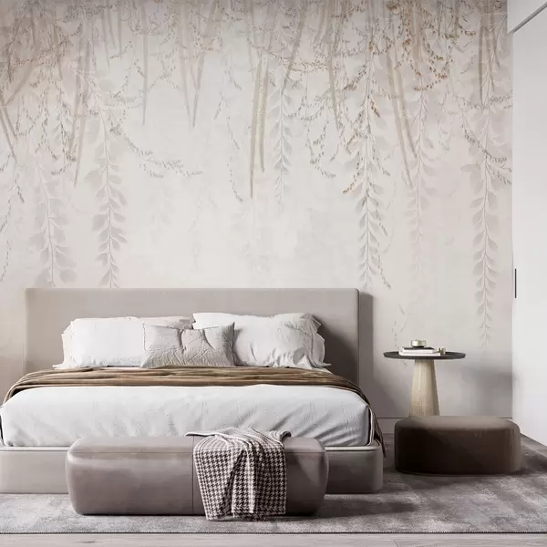 Zidne murale Lagano viseće lišće i grane u bež tonovima br. w09433