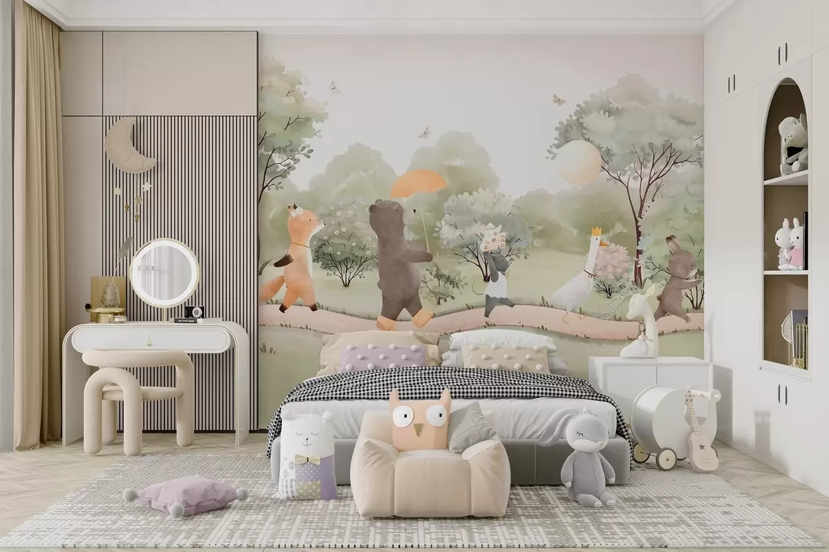 Zidne murale Svečano putovanje malih životinja kroz šumu u stilu akvarela br. w09440