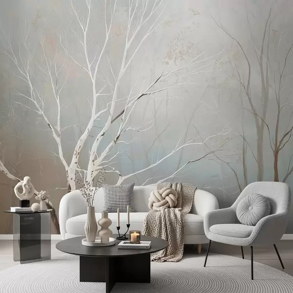 Zidne murale Lagane grane u jutarnjoj magli u pastelnim tonovima br. w09447