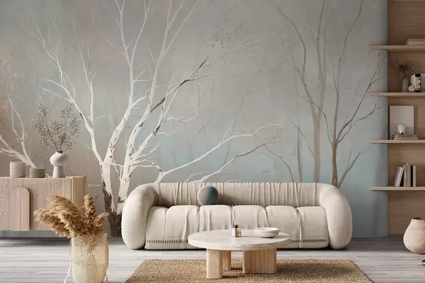zidne murale Lagane grane u jutarnjoj magli u pastelnim tonovima w09447