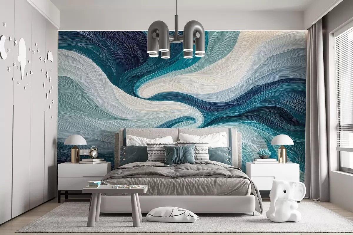 Zidne murale Apstraktna voda i vjetar u hladnim tonovima br. w09453