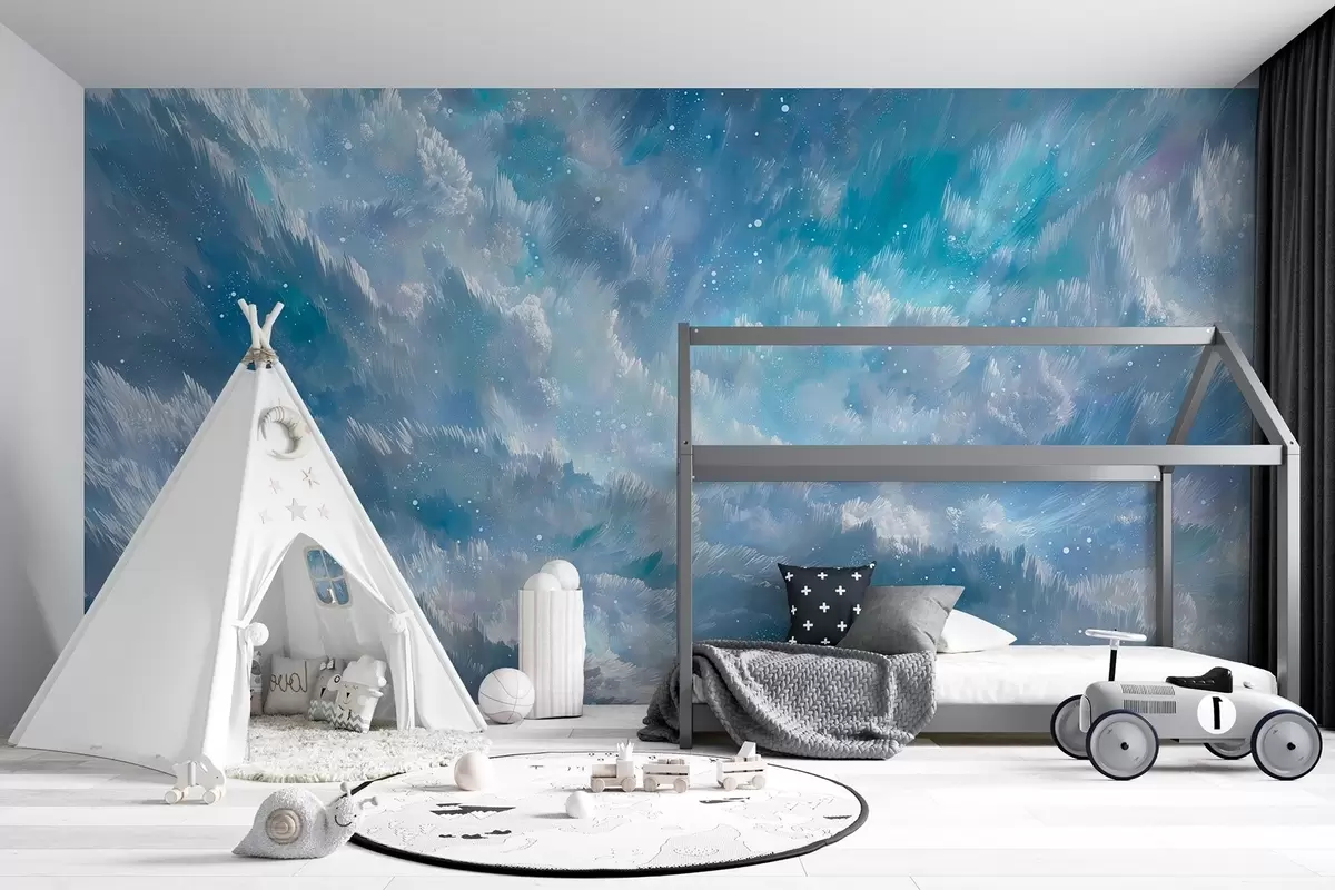 Zidne murale Nebeski apstraktni oblaci u hladnoj pastelnoj paleti br. w09459