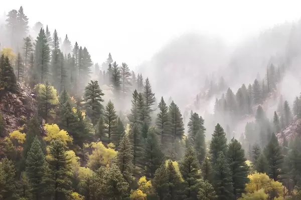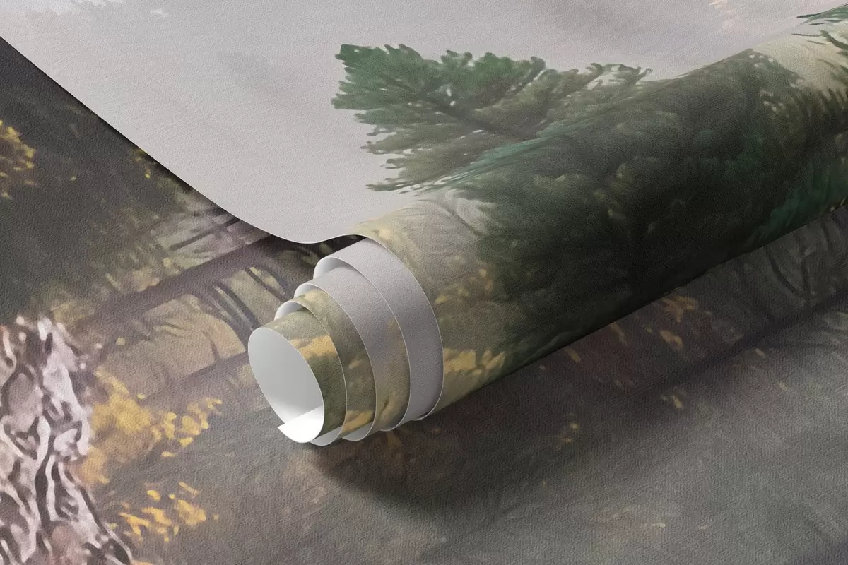 Zidne murale Atmosferska maglovita borova šuma u planinama br. w09463