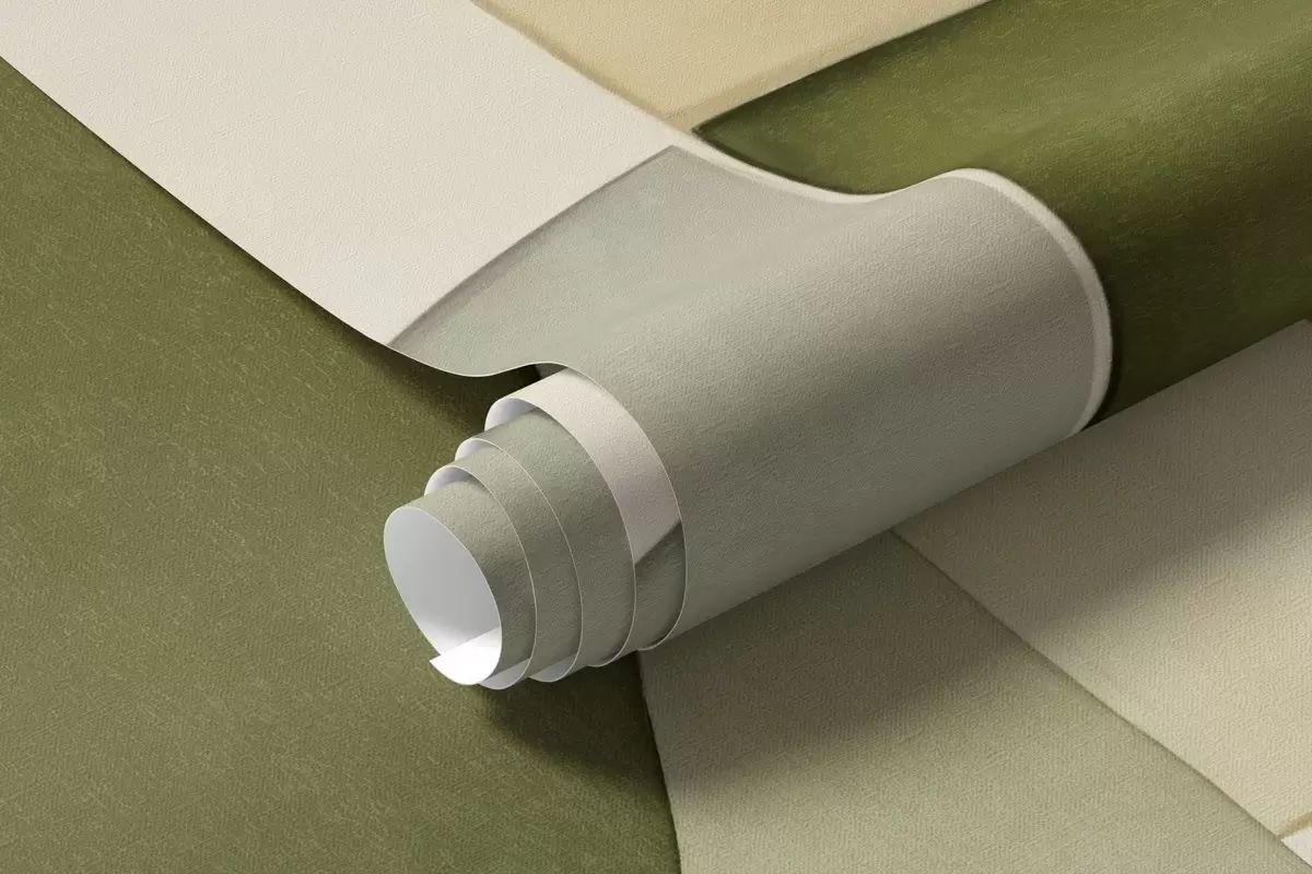 Zidne murale Apstraktni teksturirani oblici u nijansama zelene i žute, prigušeni tonovi, minimalistička kompozicija, neutralna pozadina br. w09467