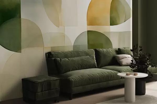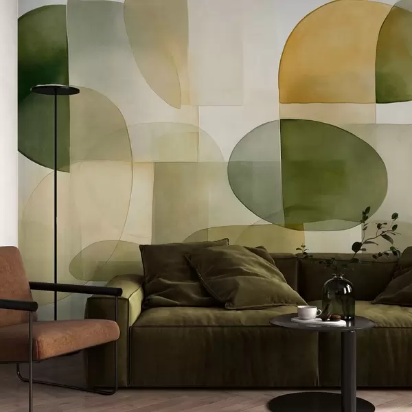 Zidne murale Apstraktni teksturirani oblici u nijansama zelene i žute, prigušeni tonovi, minimalistička kompozicija, neutralna pozadina br. w09467