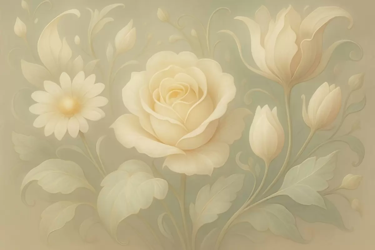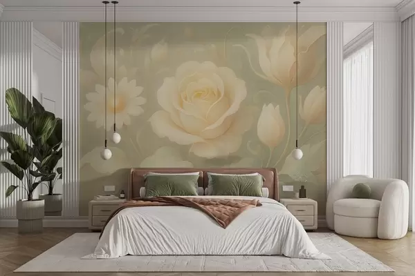 Zidne murale Nježna vintage kompozicija s bež ružama na svijetlozelenoj pozadini br. w09499